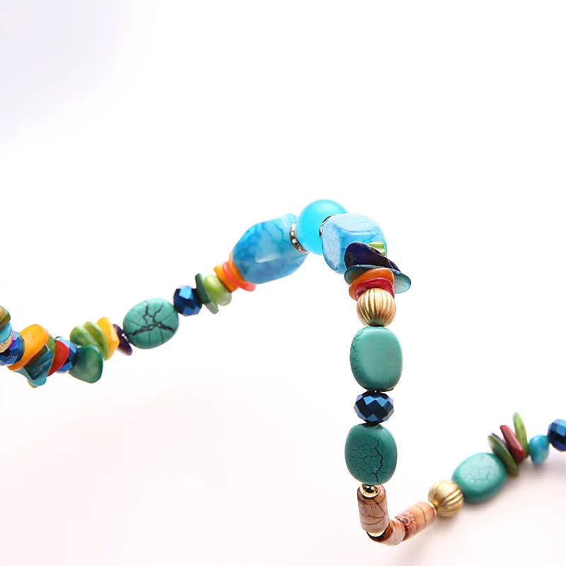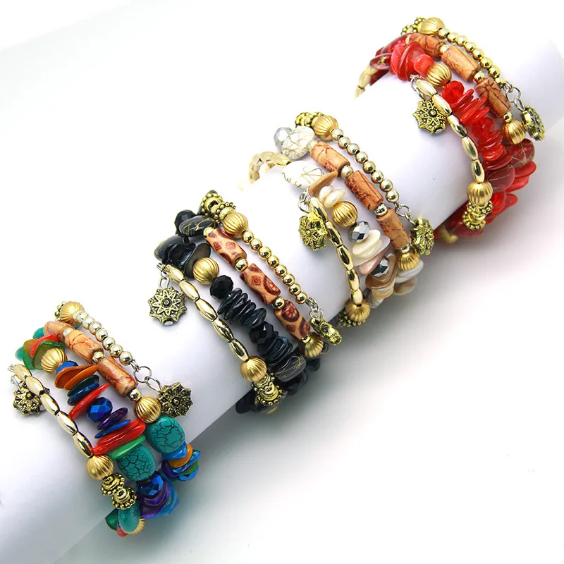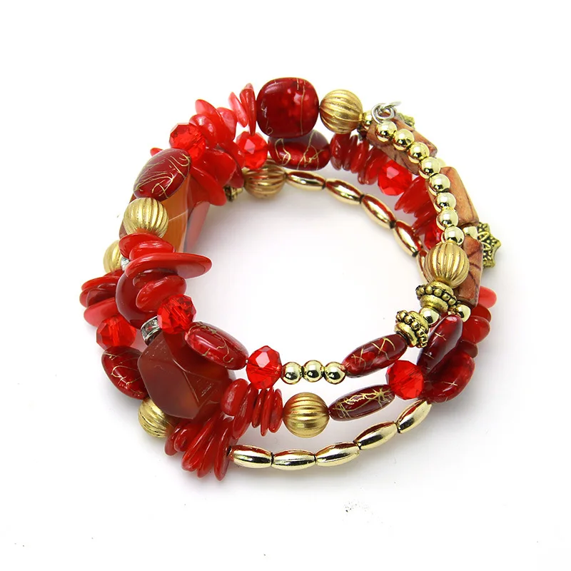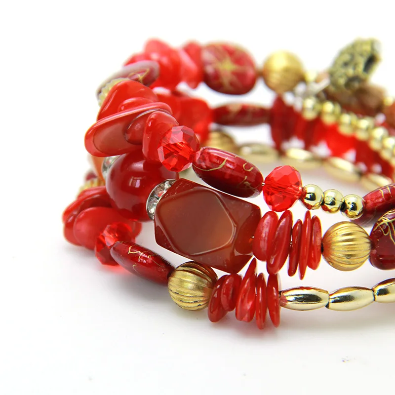 Custom Multi-layer Entangled Bracelet Handmade Braided Rope Imitate Natural Stone Turquoise Red Gem Ladies Bracelet