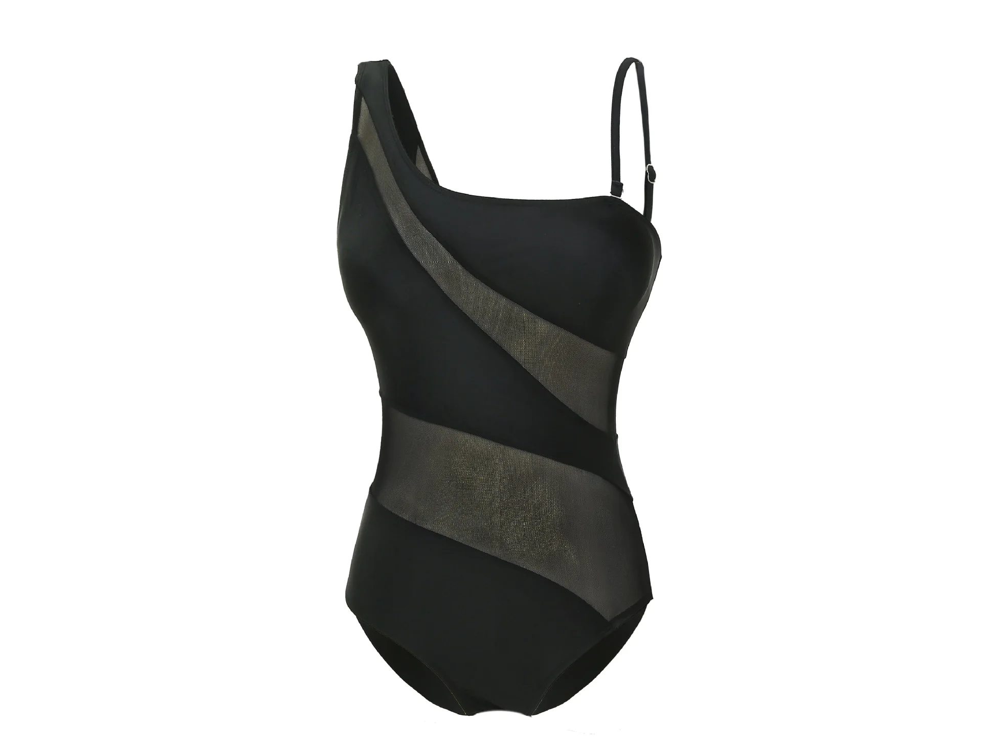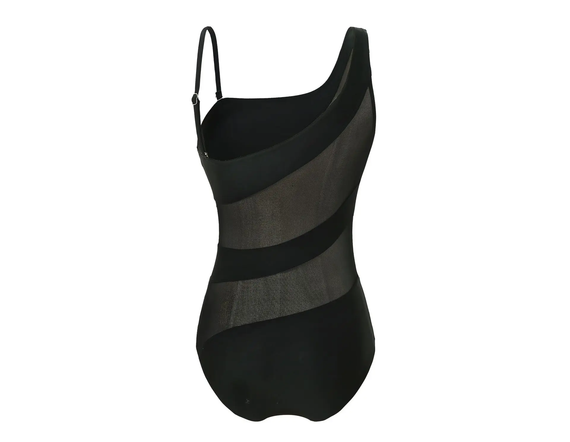 Custom One shoulder Women Bathing Suits Lace transparent swimwear Sexy Black One Piece Swimsuit