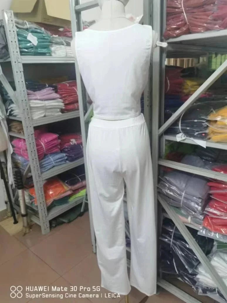 Custom Solid Color Crop Tops Short Tank Long Pants Suits Sweatpants Women Clothing Summer Women Two Piece Pants Set