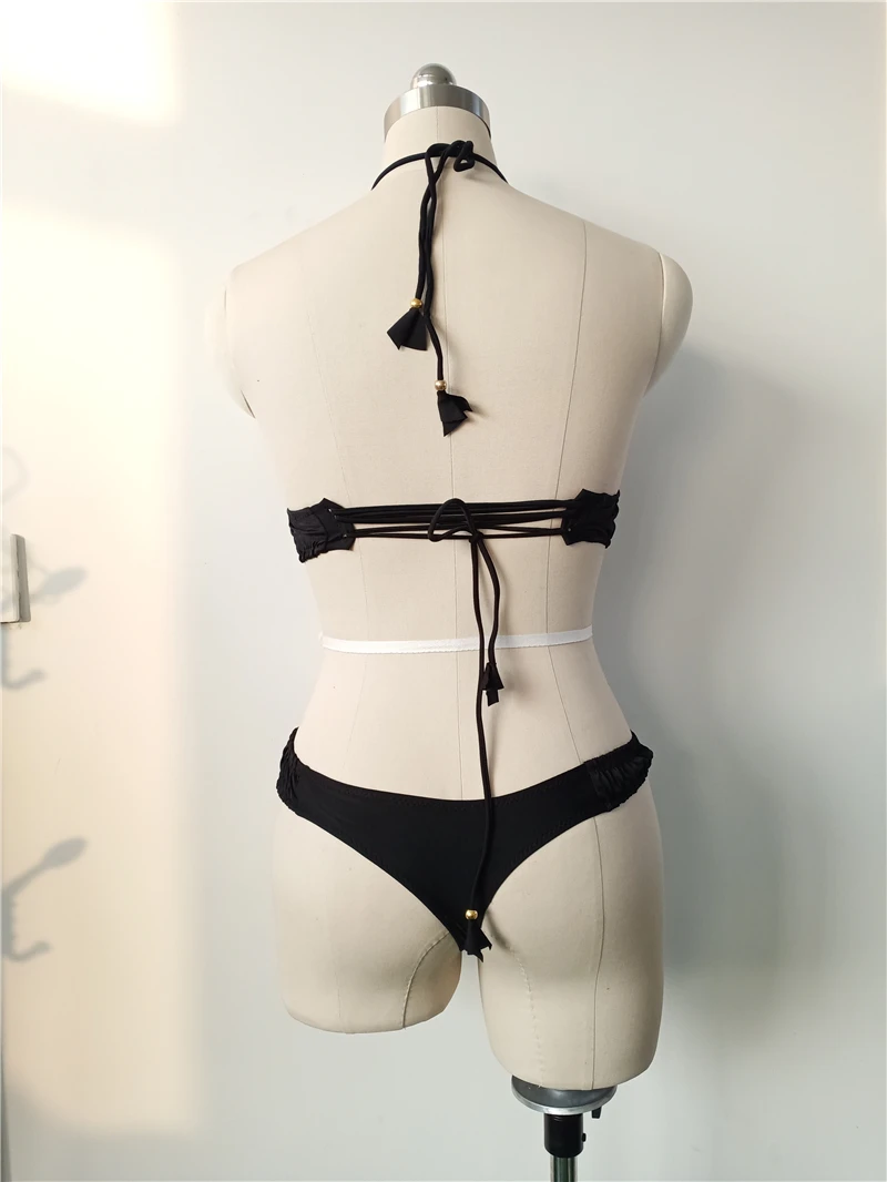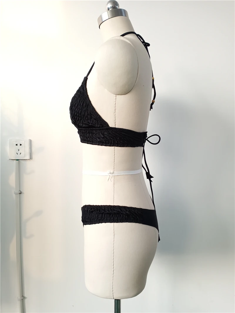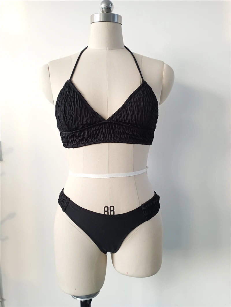 Custom two-piece pure color condole bikini sexy swimsuit swimwear wholesale three-point sling triangular bikini