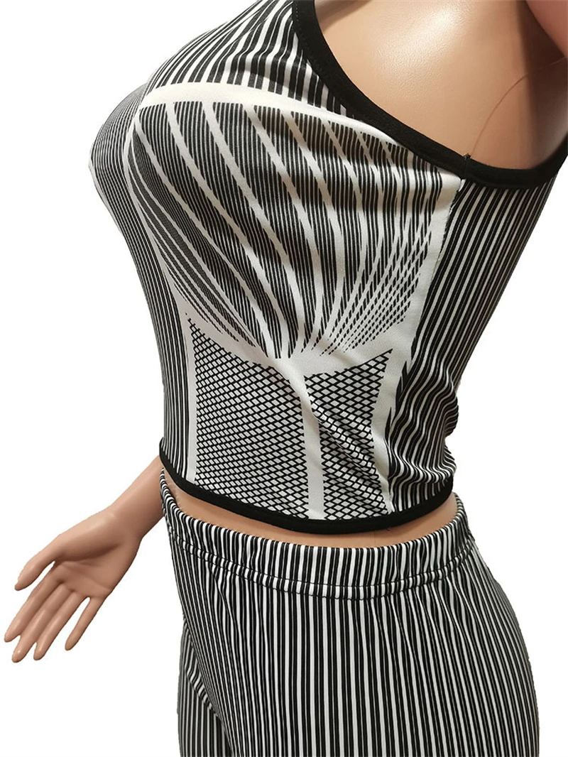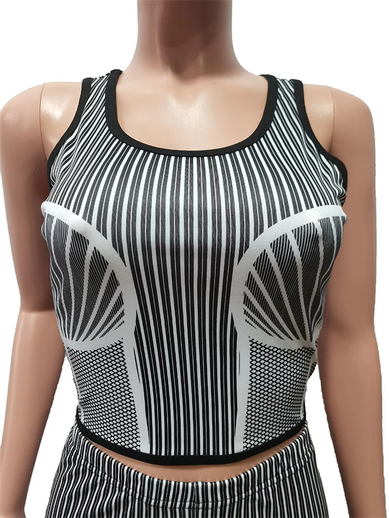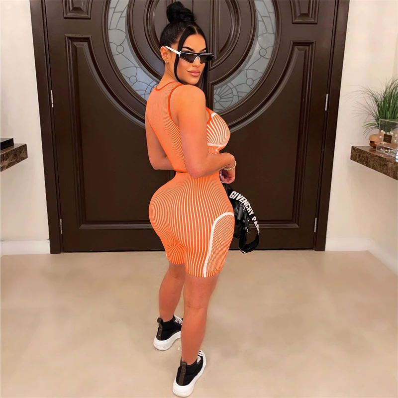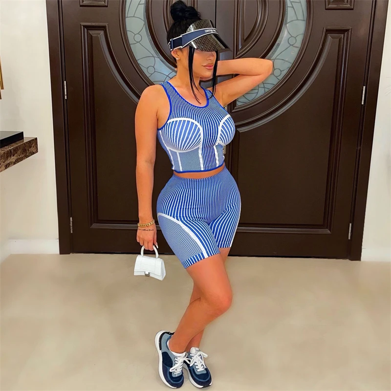 custom women knit cotton striped sleeveless crop top biker shorts two 2 piece women set street wear shorts custom for women