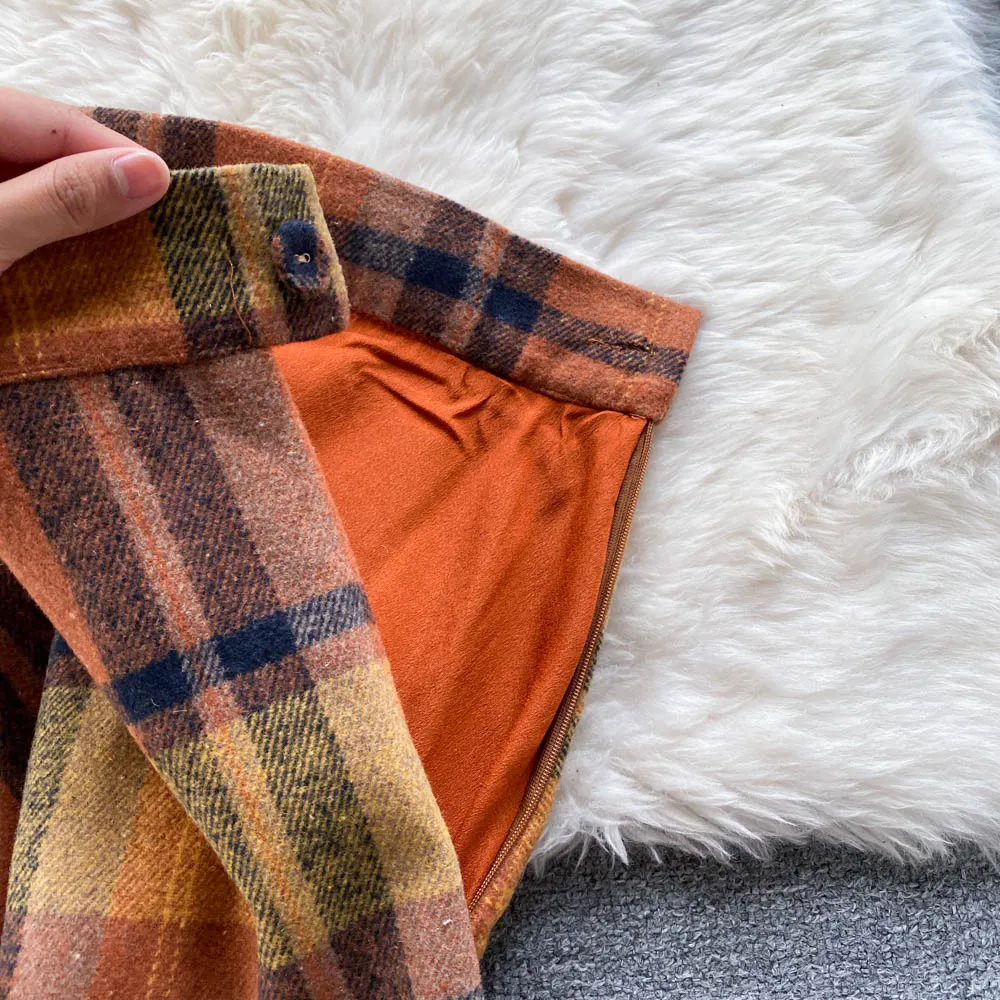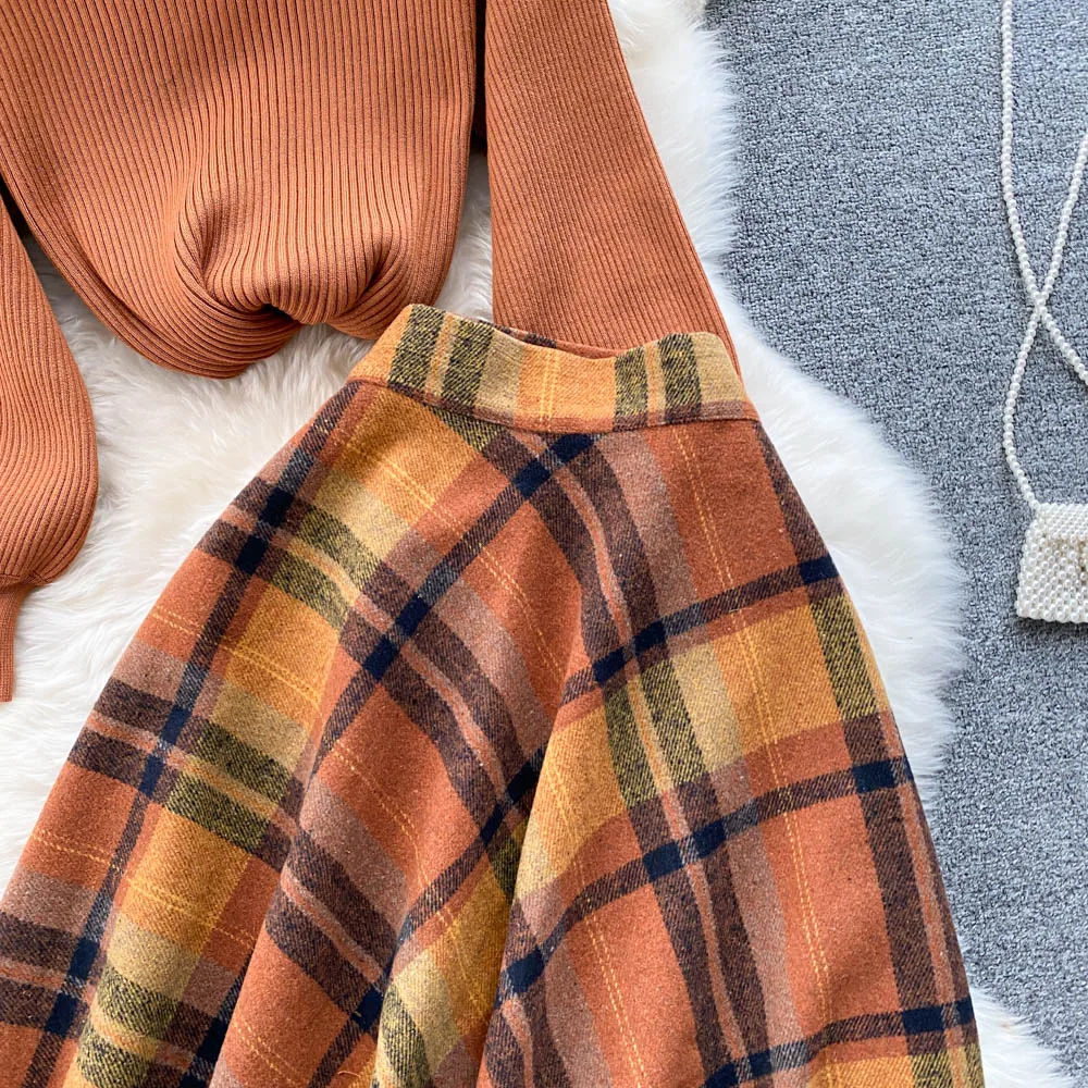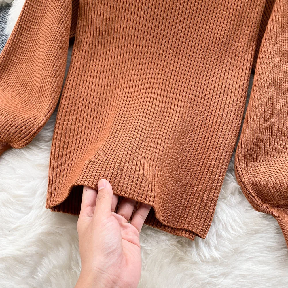 Custom Women's Autumn Winter New Knitted Wool Brown Blouse And Short Winter Brown Skirt Two Pieces