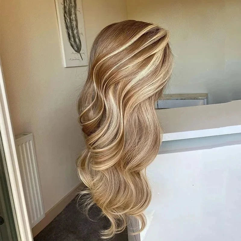 Customized Body Wave Hair Vendor Pre-Plucked Natural Hairline Cambodian Remy Hair Blonde Highlight Color 13*4 Lace Front Wig