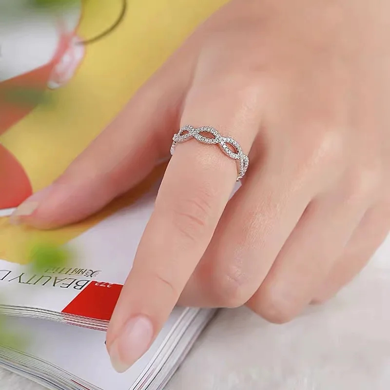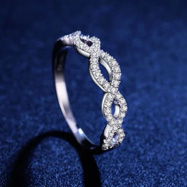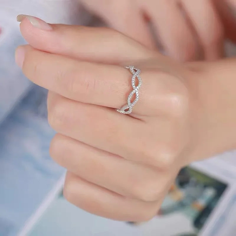 customized D color vvs moissanite diamond twisted band ring in 925 sterling silver