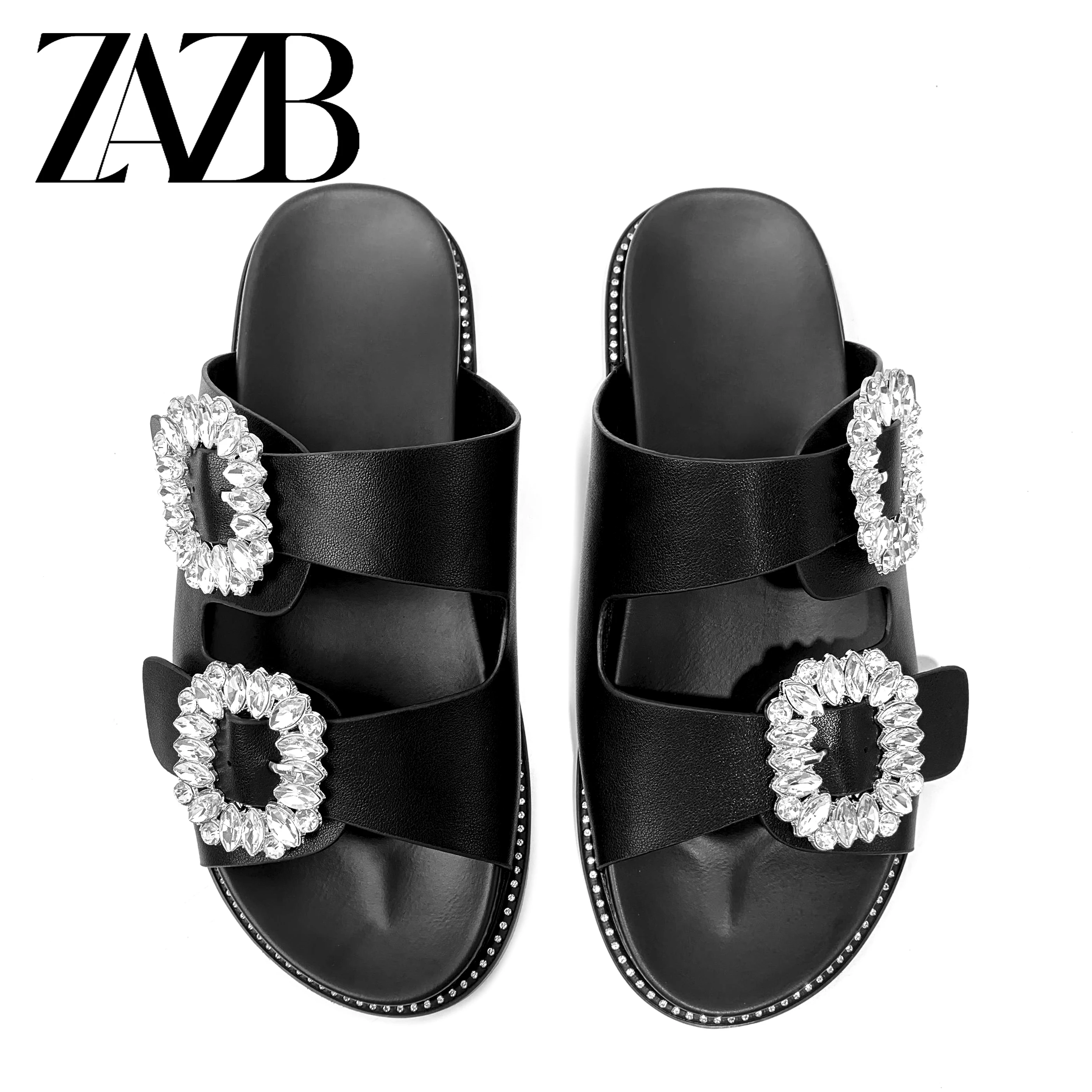 Customized designer shoes Metal button luxury slippers Women's and women's thick heel slippers Luxury women's fashion
