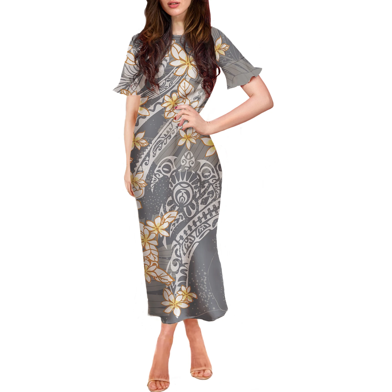 Customized Your Design Floral Print Round Neck Maxi Dress Women's Long Maxi Dresses Plumeria Floral Print Summer Dress Midi