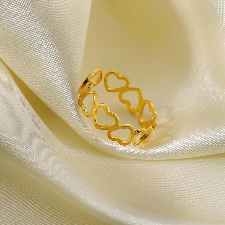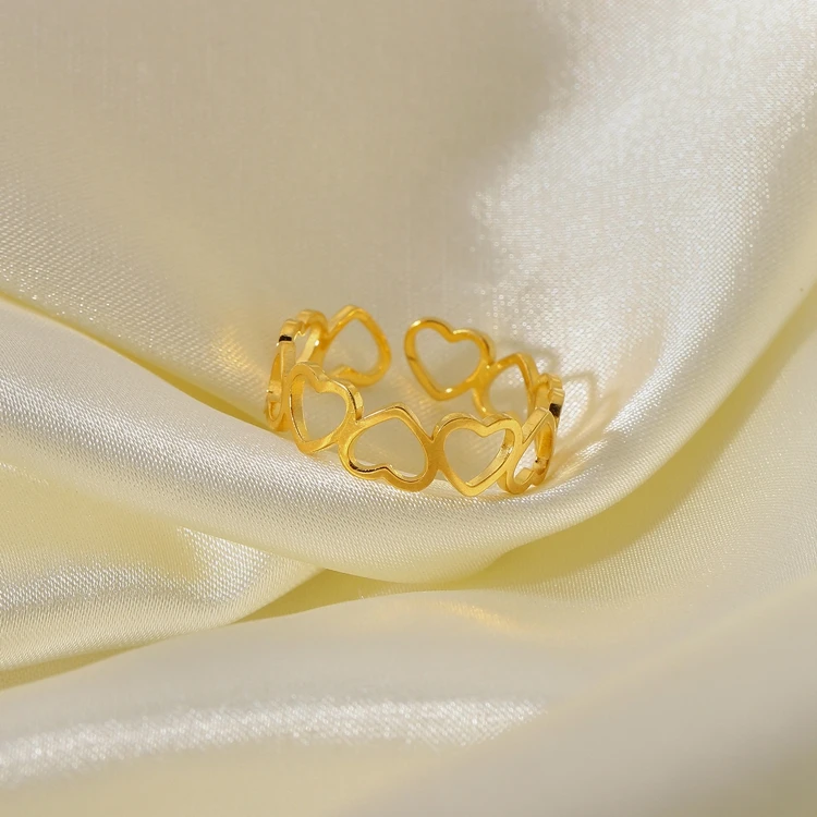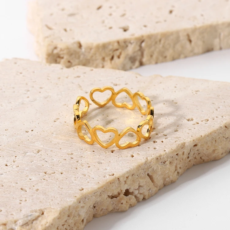 Cute 18K Gold Plated Stainless Steel Hollow Love Heart Romantic Adjustable Rings For Women Jewelry