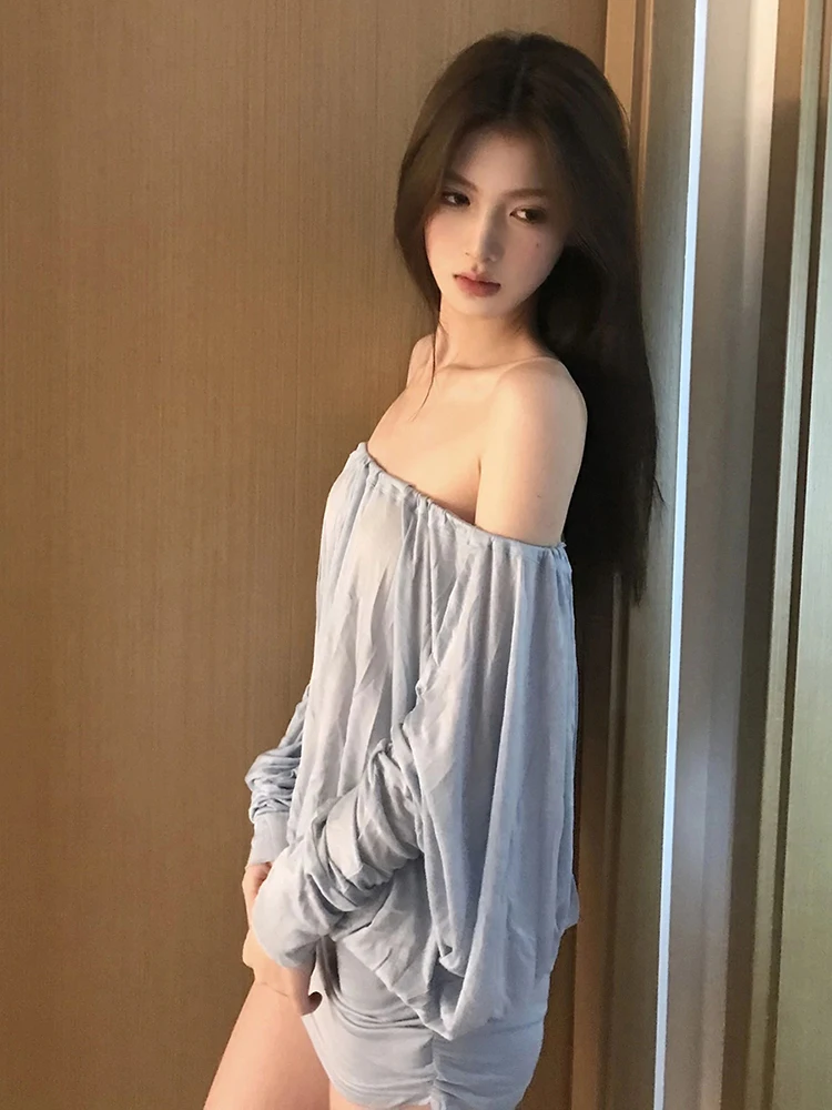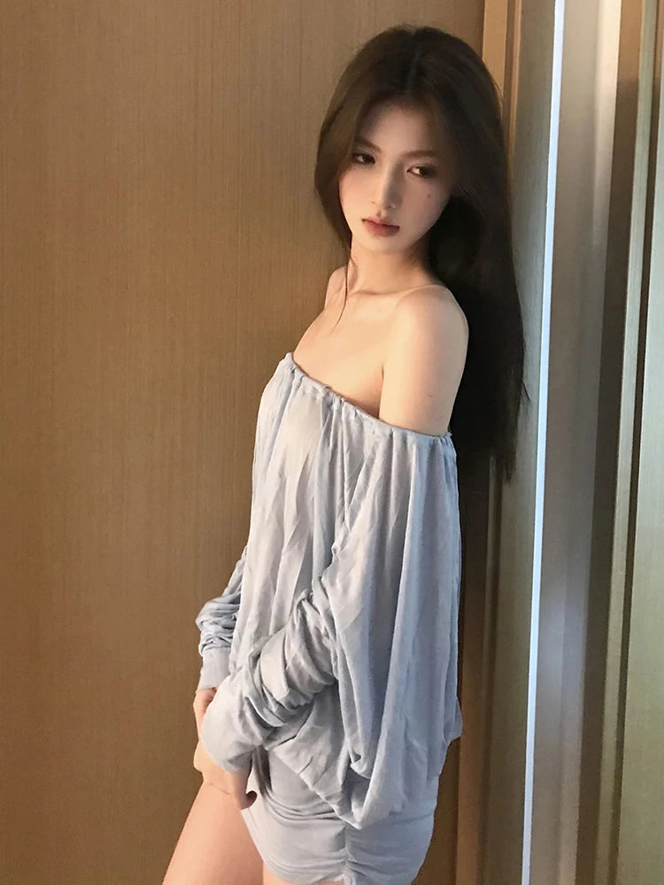 Cutenew Elegant Slash Neck Dress Women Sexy Bat Sleeve Ruched Backless Bandage Club Streewear Stretch Peach Hip Mini Bodycon