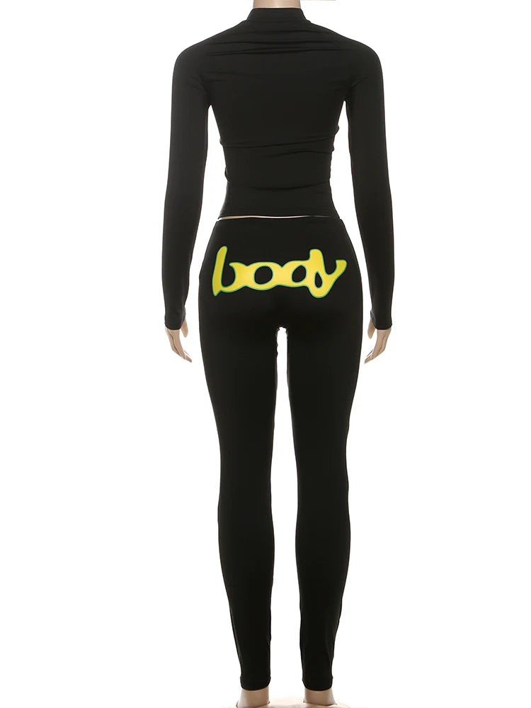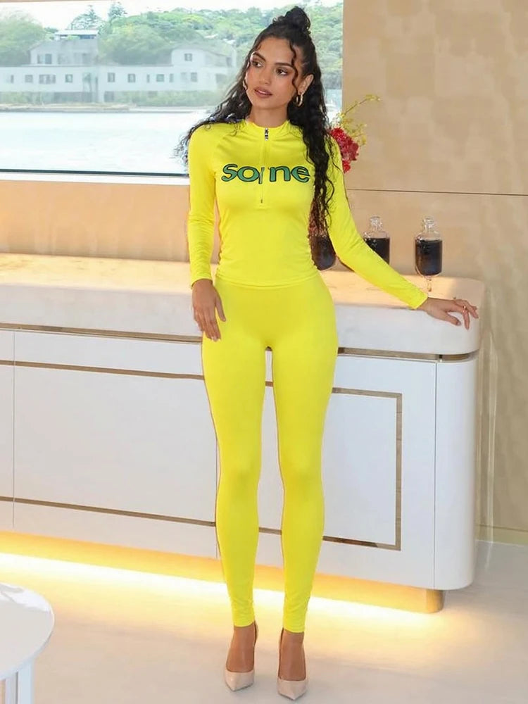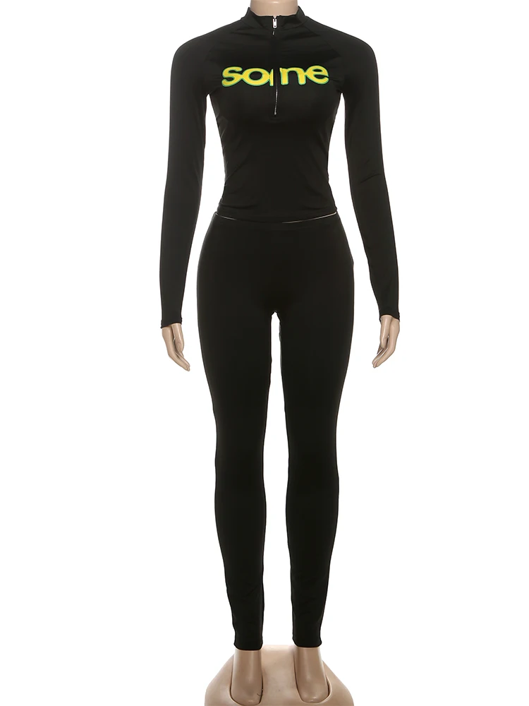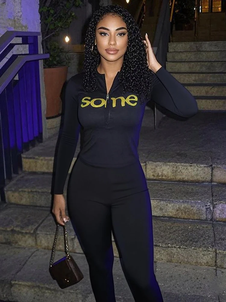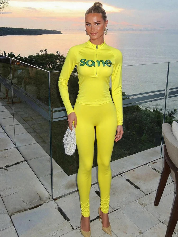 Cutenew Letter Print Matching 2 Piece Set Women Fashion Sporty Zip-up Crop Tanks+High Waist Pants Female Casual Basic Tracksuits