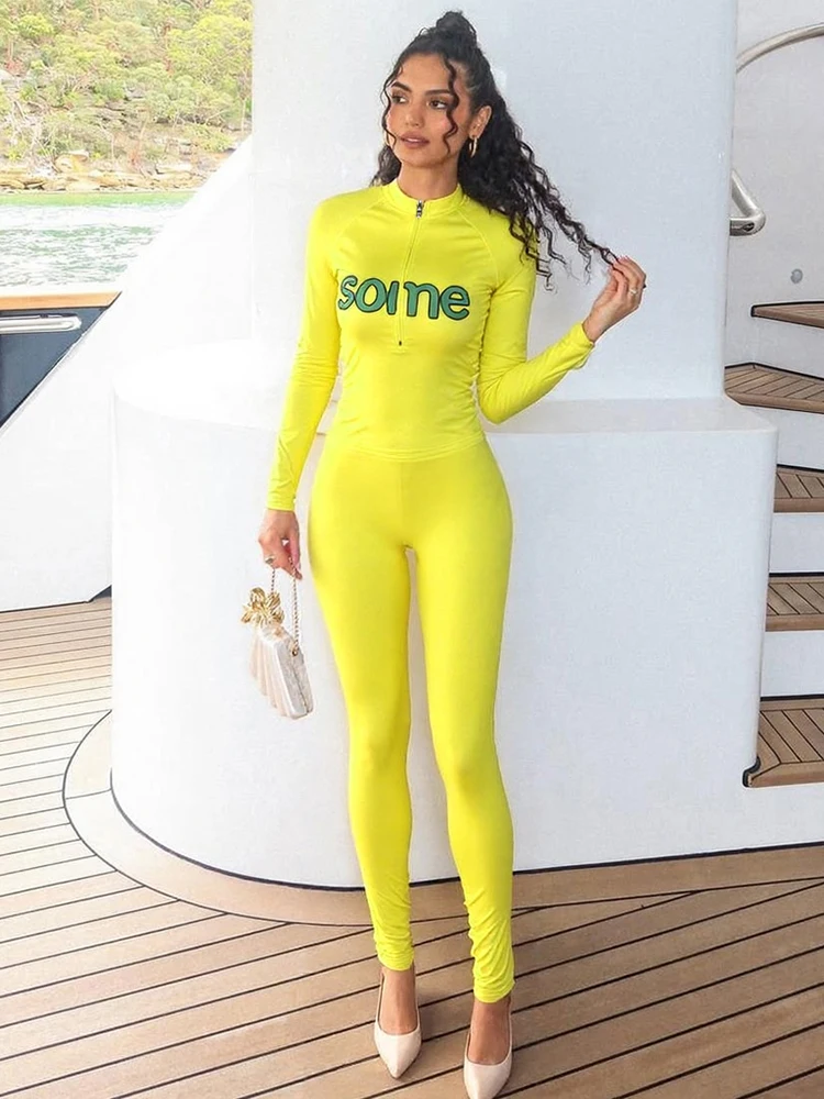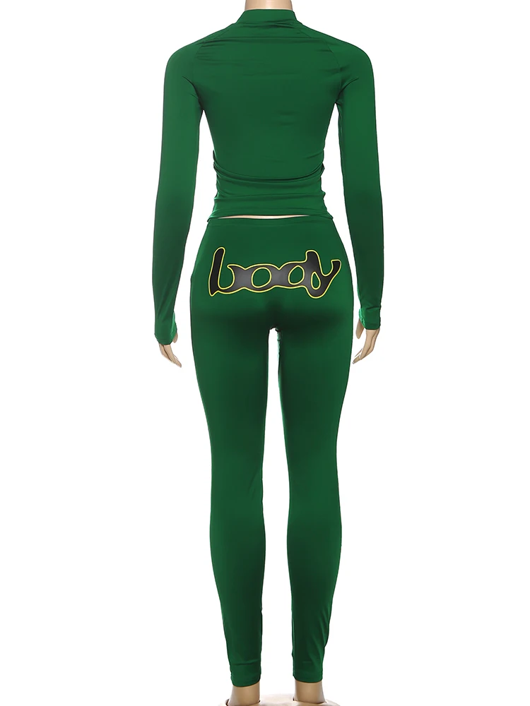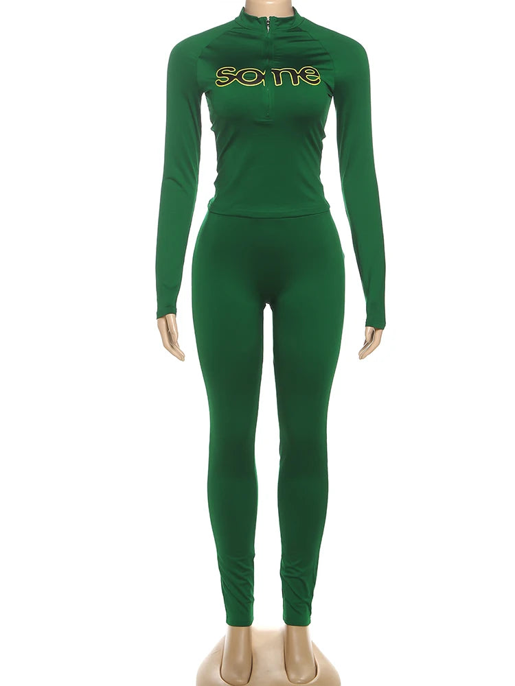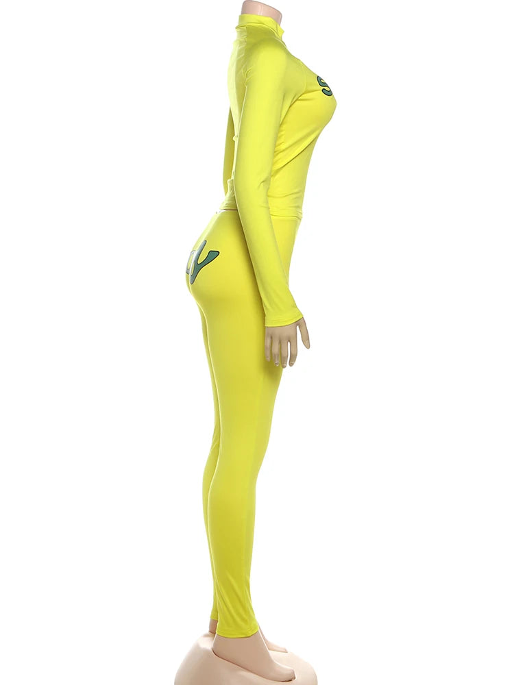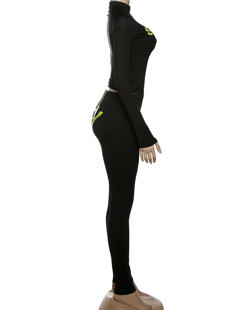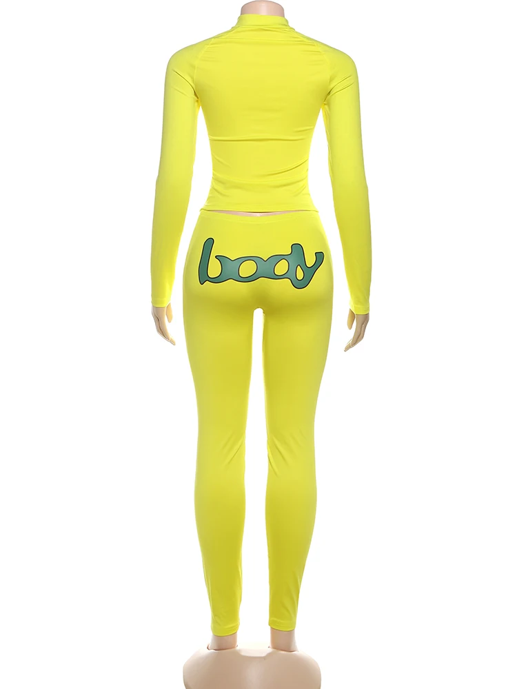 Cutenew Letter Print Matching 2 Piece Set Women Fashion Sporty Zip-up Crop Tanks+High Waist Pants Female Casual Basic Tracksuits