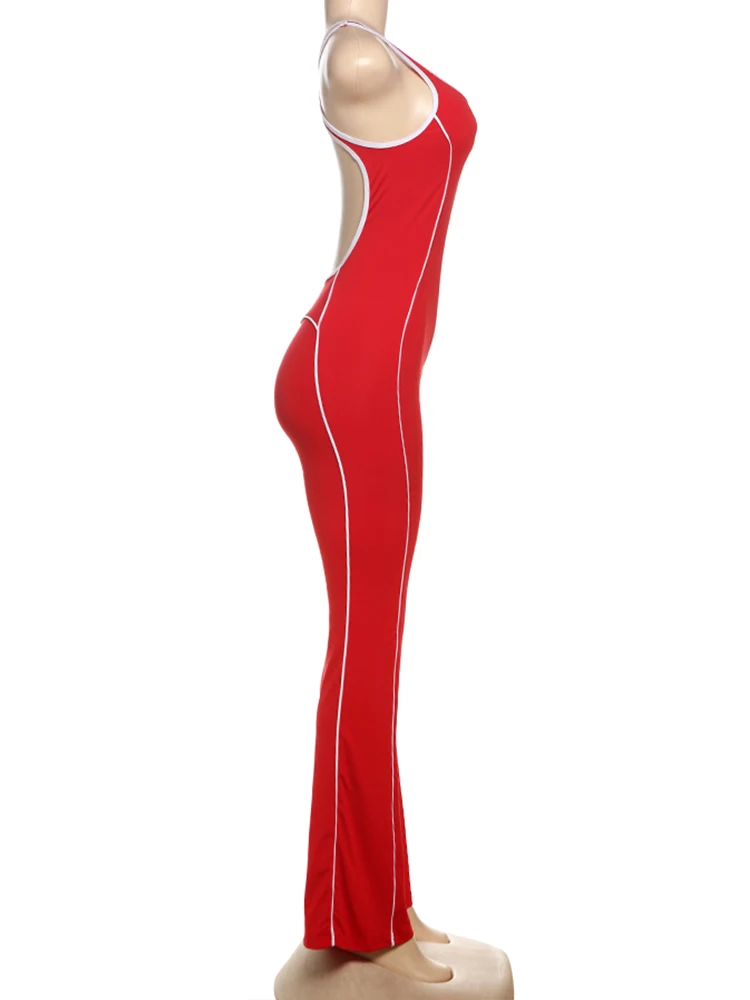 Cutenew Panelled Stripe Women Jumpsuits Casual Summer Sporty O-neck Sleeveless Backless Skinny Overalls Female Active One Piece