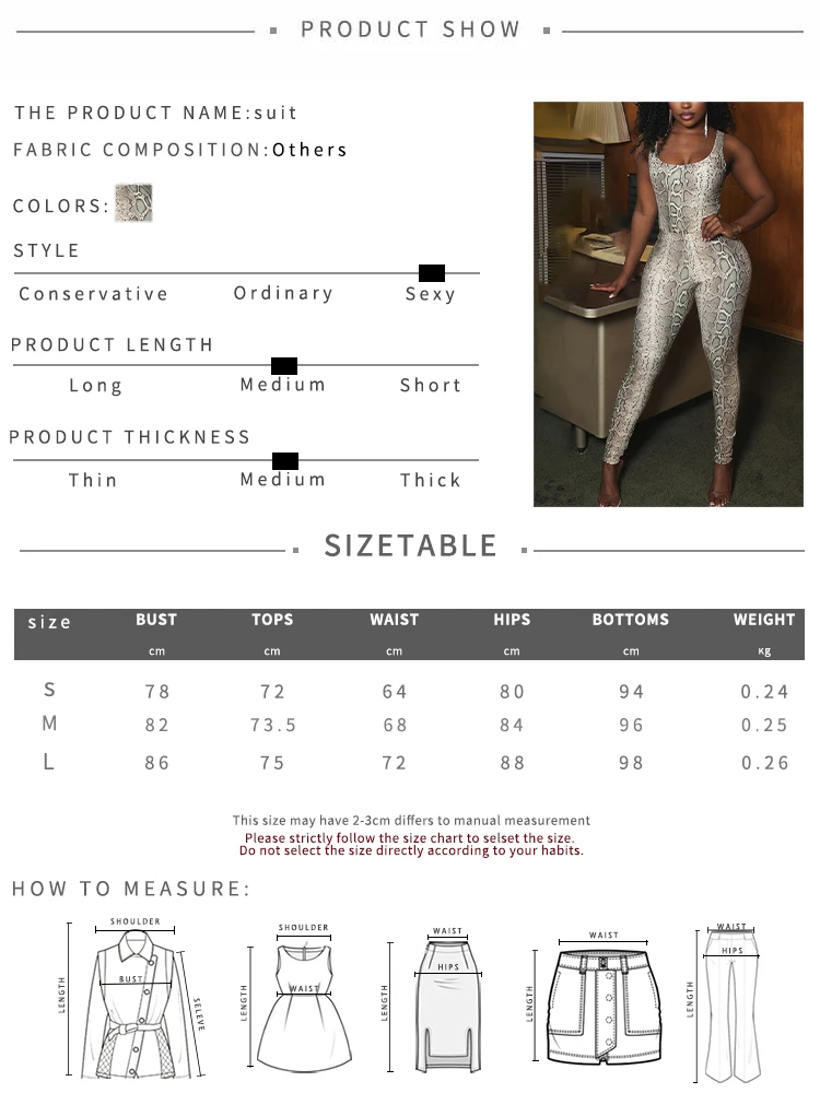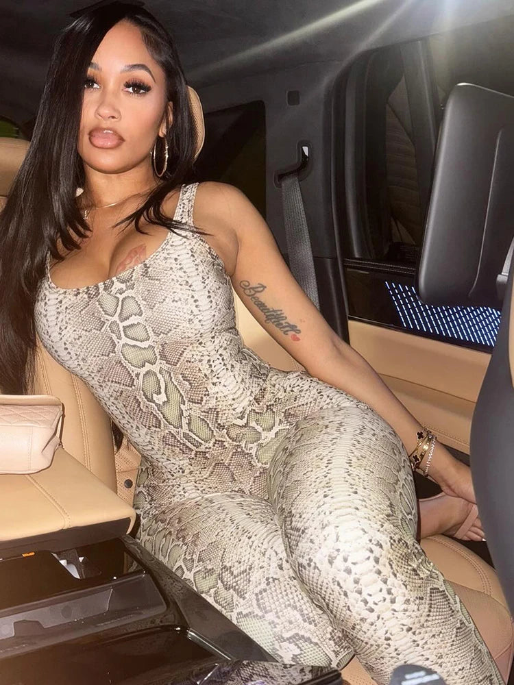 Cutenew Woman Sexy Snake Print Jumpsuit Tight Stretch Sleeveless Skinny Midnight Clubwear Party Sexy Activity Workout Overalls