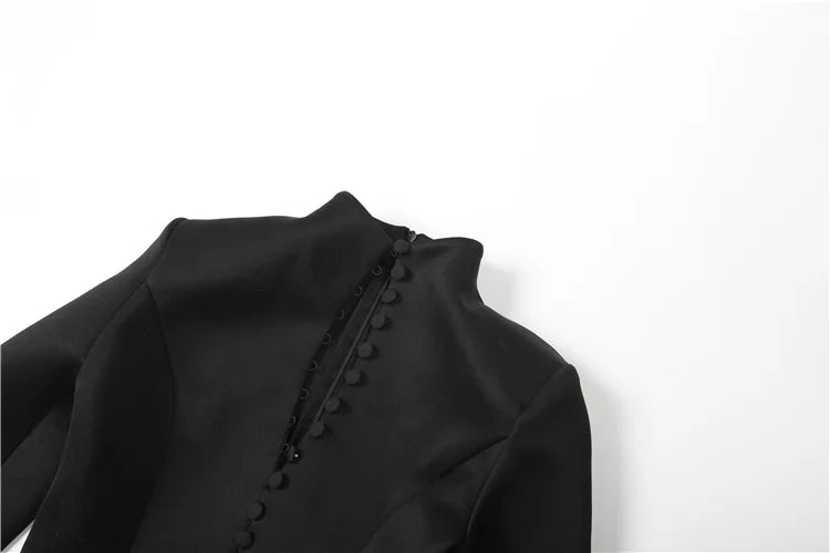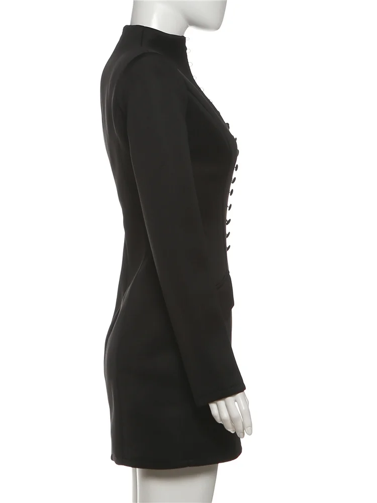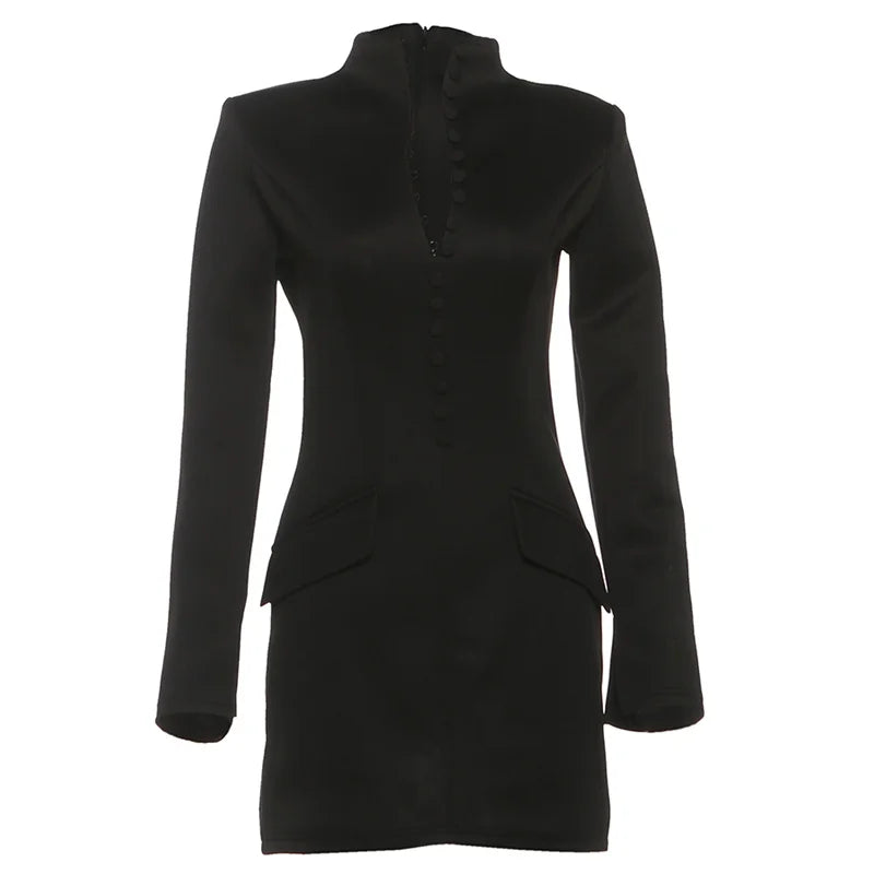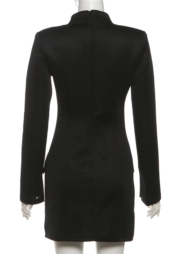 Cutenew Women Trend Elegant Office Dress Autumn Single Breasted Stand Collar Simple Solid Street Commute Skinny Suit Bodycon