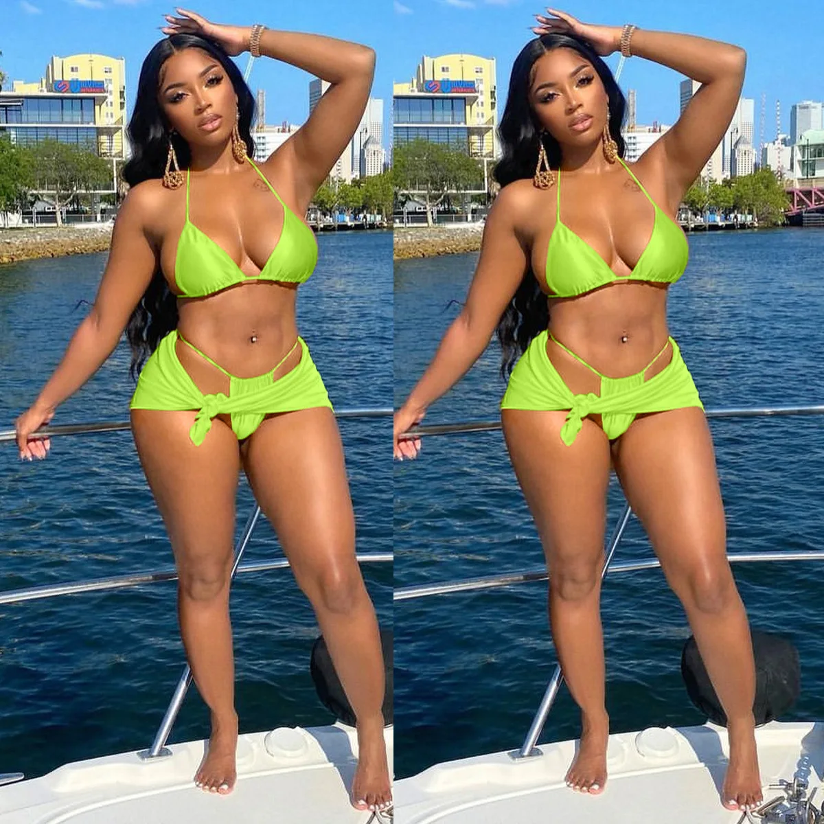 CUTENOVA 23BK050903 Fashion Sexy Summer Swimwear Bikini And Top Set For Women Three Piece Outfit Women's Sets