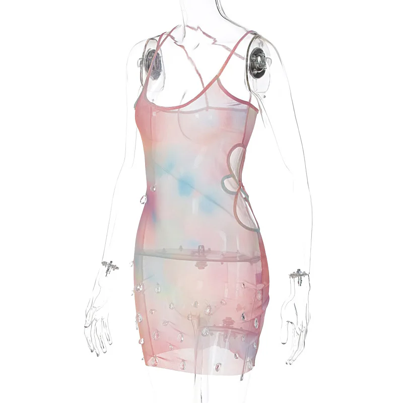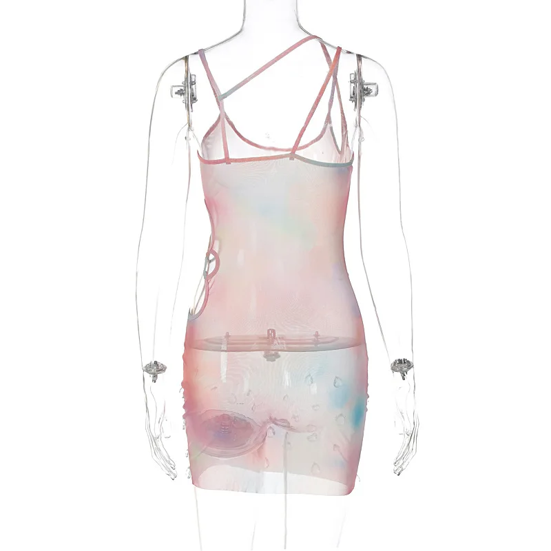 CUTENOVA 23DS072101 2023 Summer Popular Hip Sexy See Through Tight Porm Mini Bodycon Dresses Women Dress
