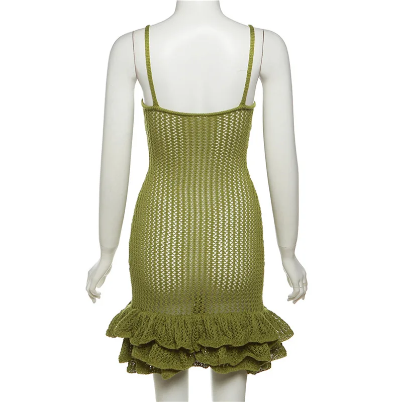 CUTENOVA 23DS0819 Knit Solid Sleeveless Ruffles Strap Summer Fashion 2023 Mini Party Casual Dress