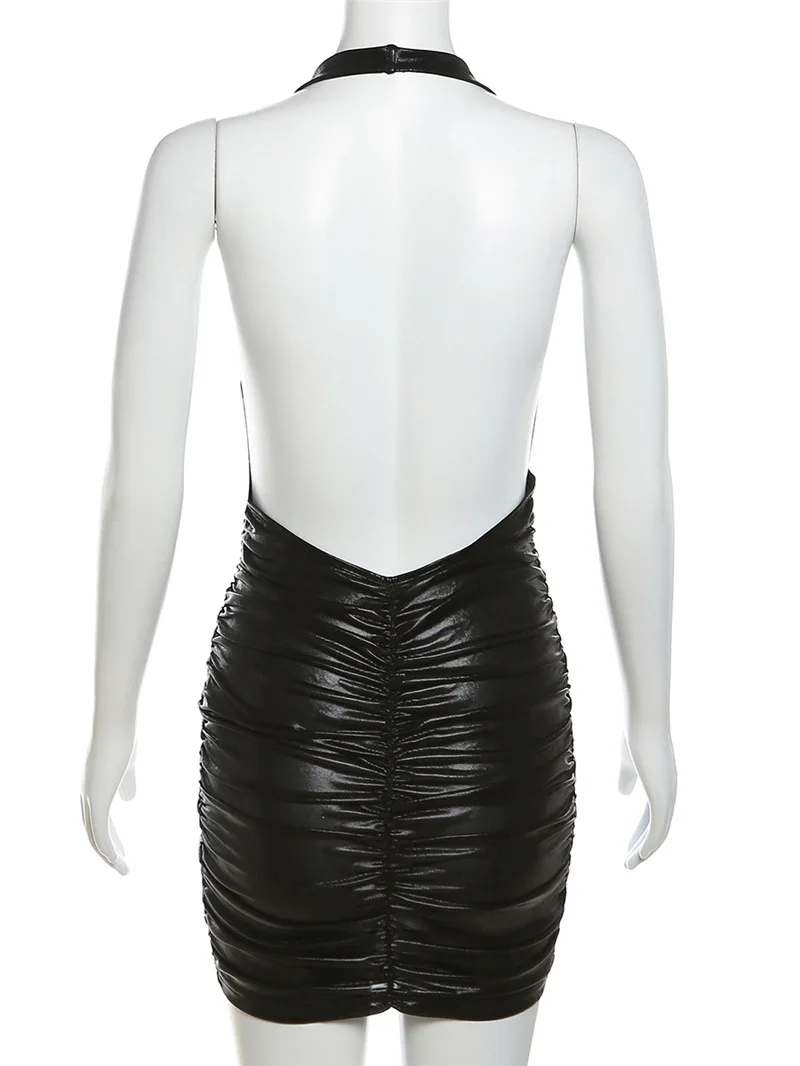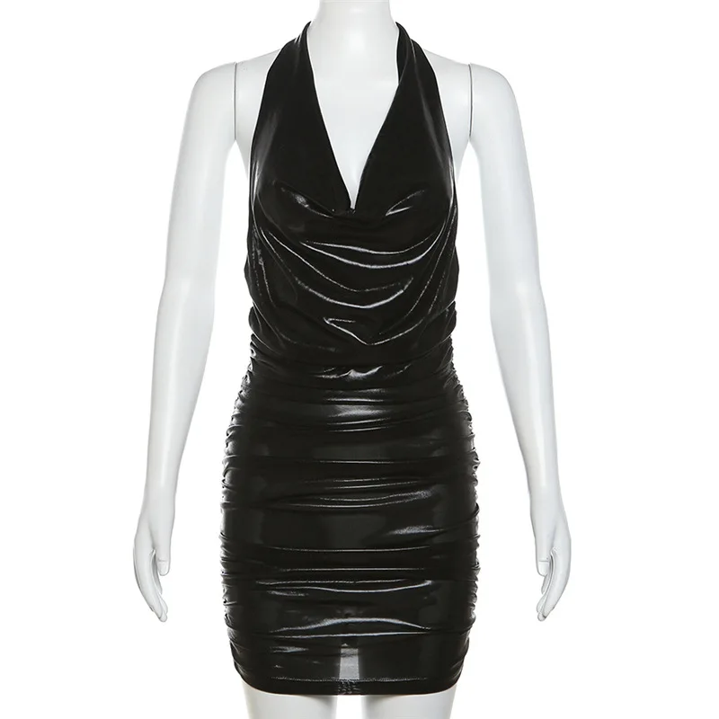 CUTENOVA 23DS0913 Summer New Halter Backless Hip Metallic Mini Bodycon Club Party Dresses Women Dress Sexy