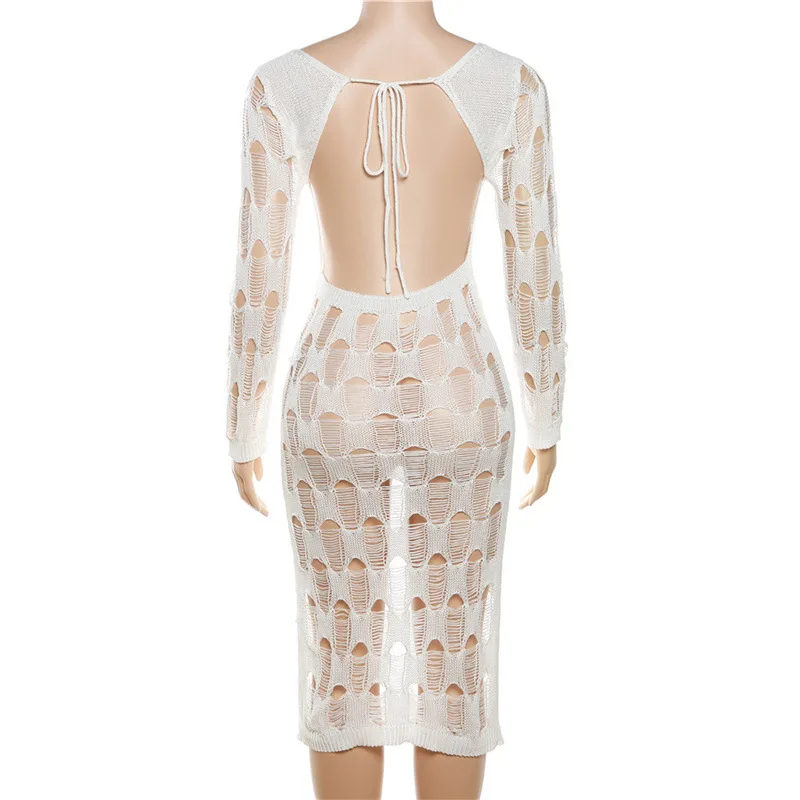 CUTENOVA 23DS092304 Autumn Backless Sexy Bodycon Black Dress Hip Midi Dress Long Dresses Women