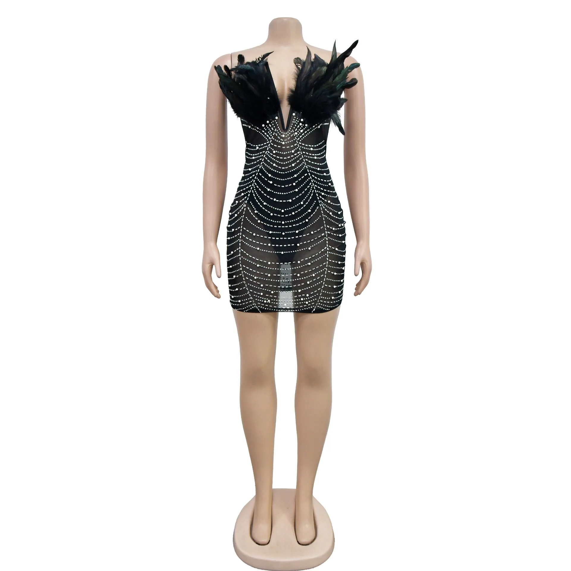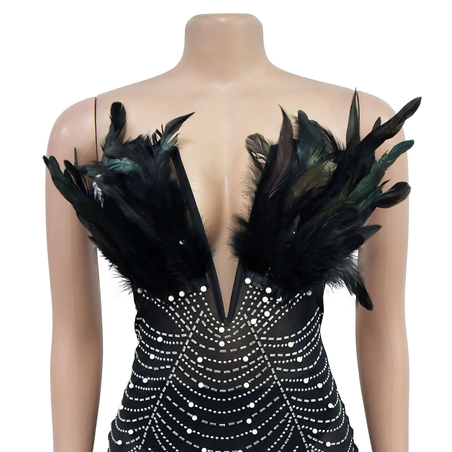 CUTENOVA 23DS122305 New 2024 Fashion Feather Diamond Patchwork Women Porm Dress Sexy Club Dresses Women's Dresses