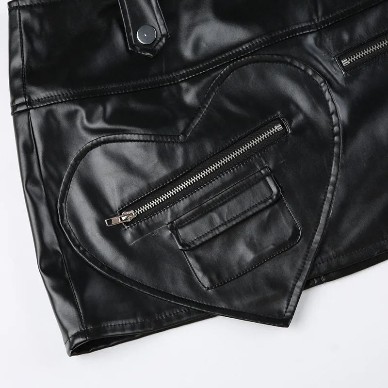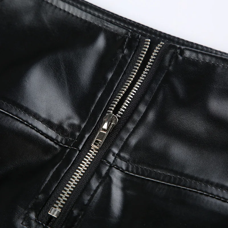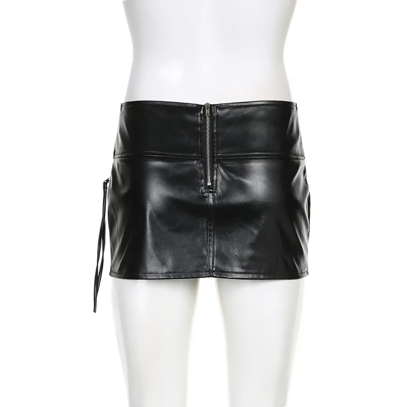 Cutenova 23SK122302 Sexy 2024 Girls Streetwear Motorcycle Patchwork PU Leather Skirt Mini Skirts For Women