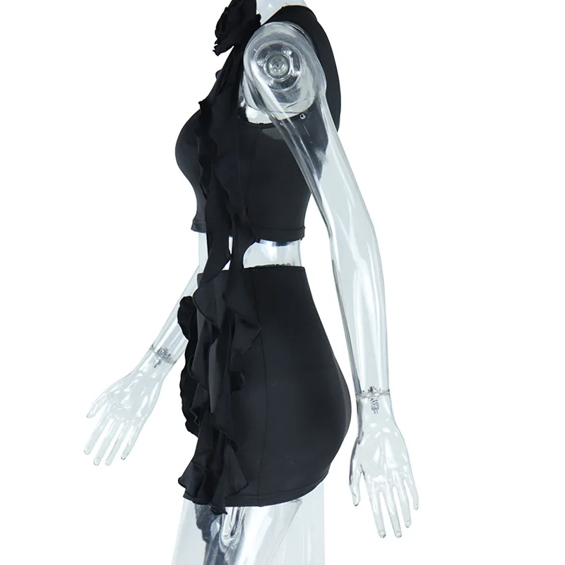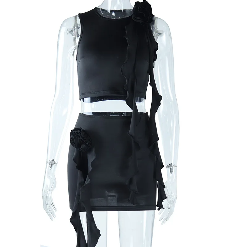 CUTENOVA 23ST072001 2023 New Summer Flower Tassel Mini Skirt And Crop Top Set For Women Two Piece Skirt Set
