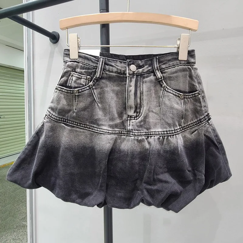CUTENOVA 24PT011305 New Fashion Cute 2024 Y2K Casual Gradient Women's Denim Skirts Pleated Women Mini Skirt