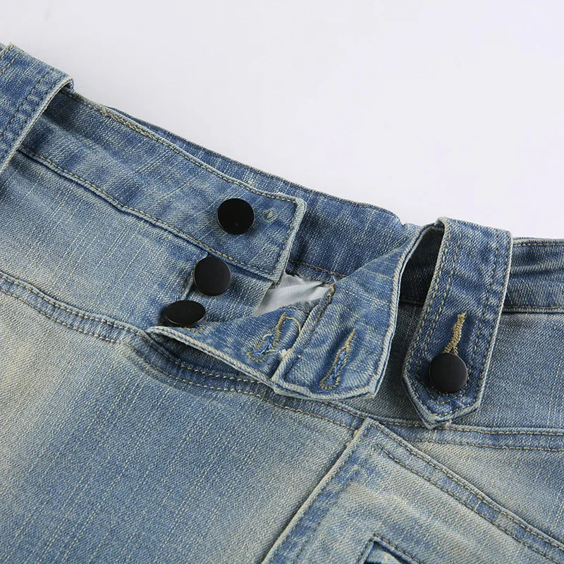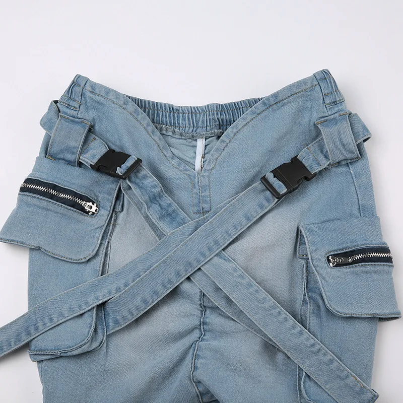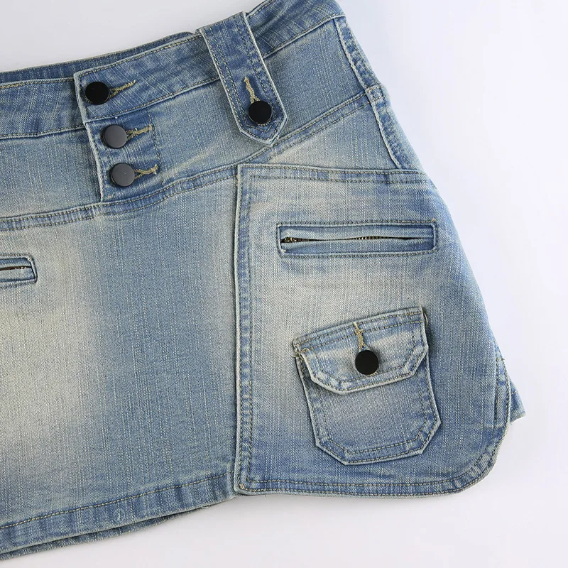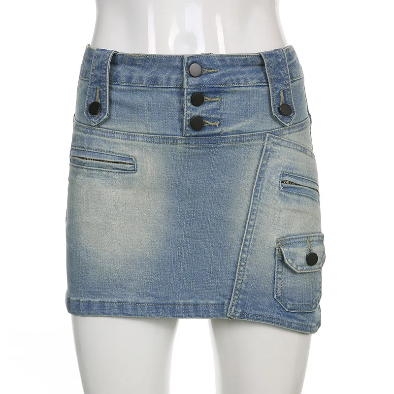 CUTENOVA 24SK010303 New 2024 Trendy Cargo Ladies Patchwork Jeans Skirt Denim Mini Skirt Women