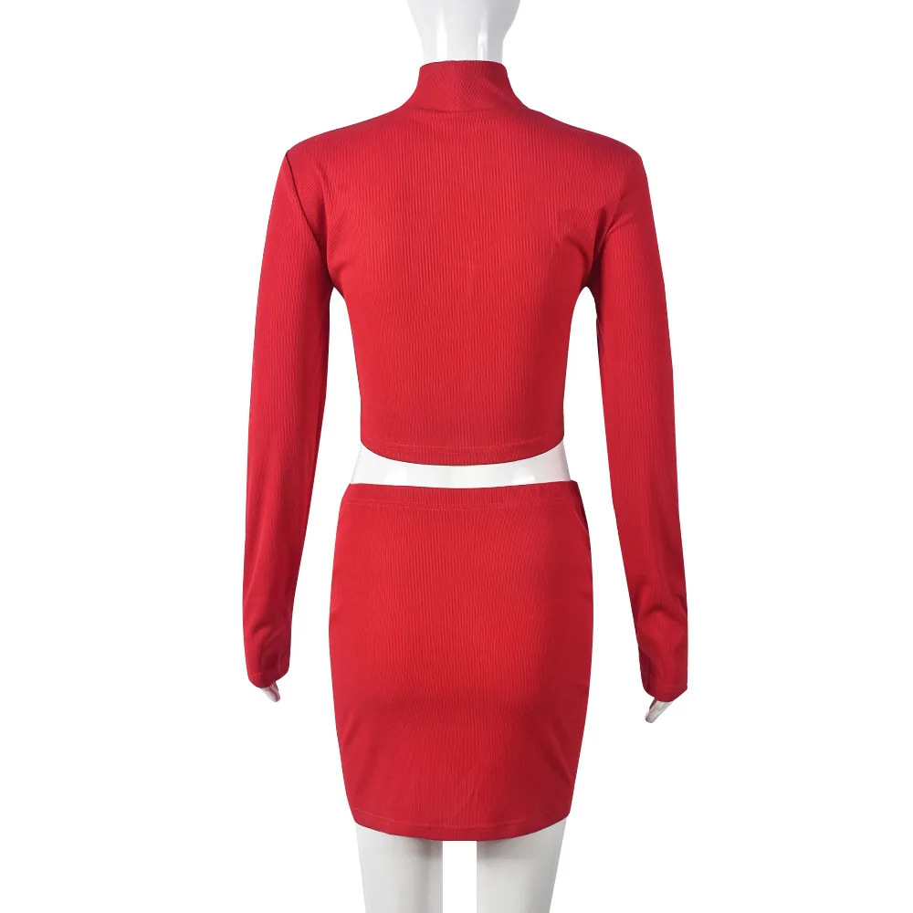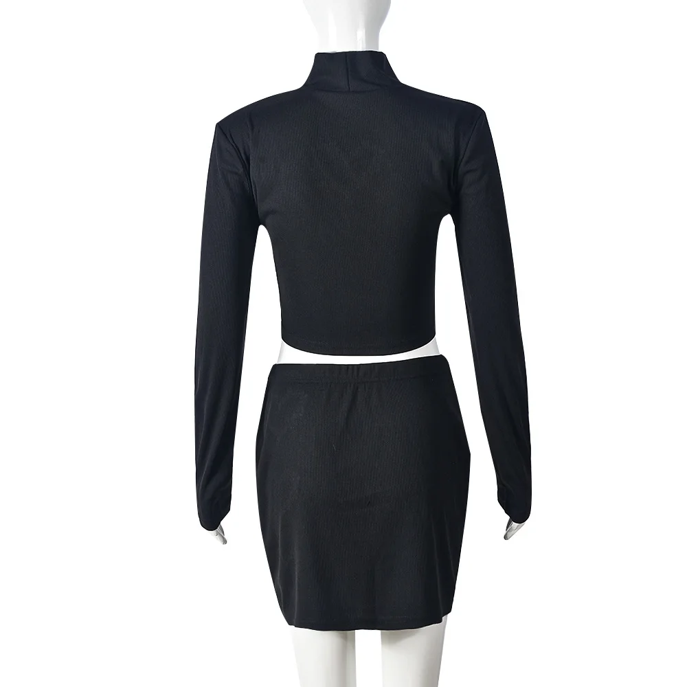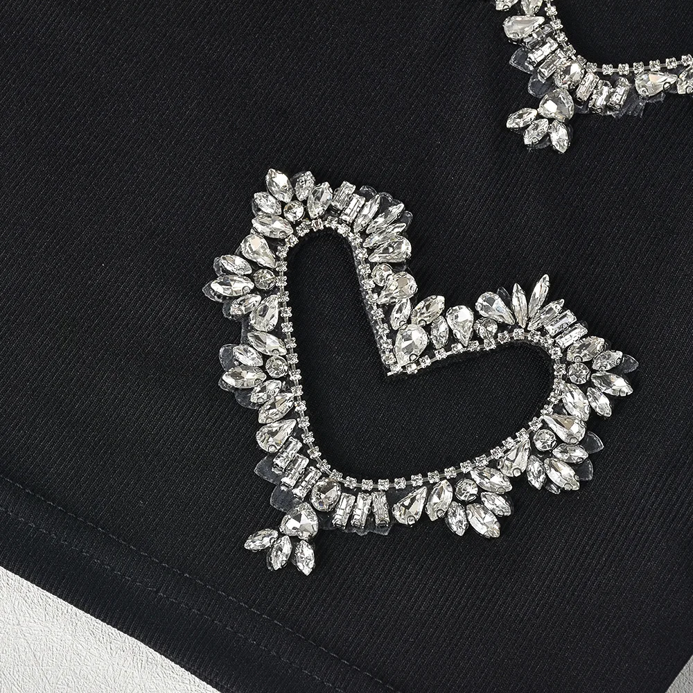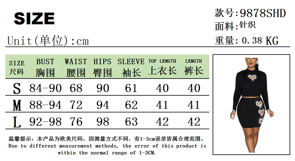 CUTENOVA 24ST010804 Hollow-Out Heart Shape Rhinestone Long Sleeve Crop Top Pencil Skirt Two Piece Skirt Set Women 2024