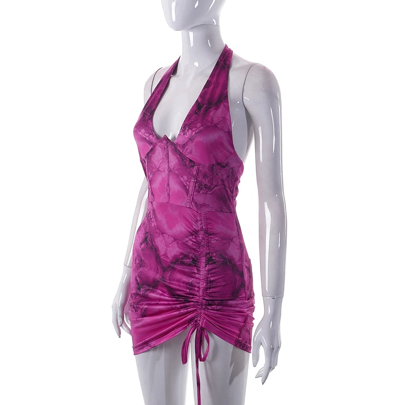 Cutenova J22DS200 Drawstring Solid Sexy Club Summer Trending Corset Dress Bodycon Dress Mini Dress