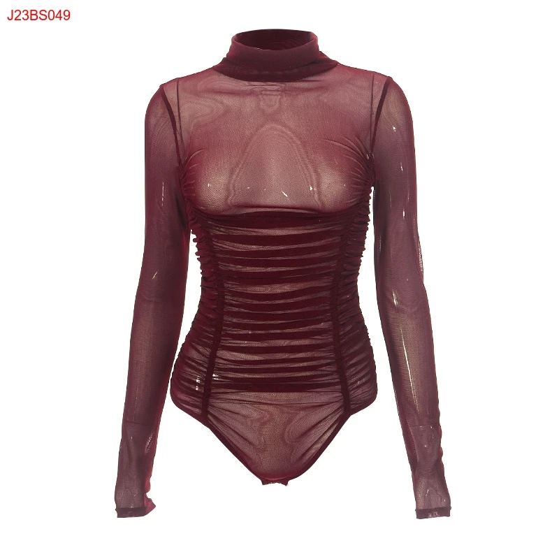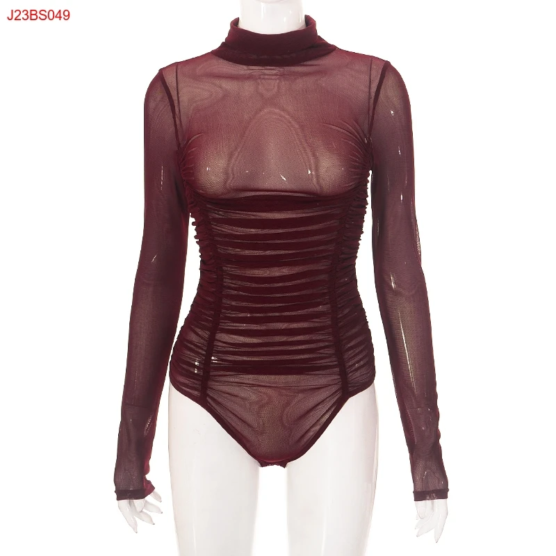 Cutenova J23BS049 Pure Color Simple Elegant Long-Sleeved Jumpsuits Playsuits Bodysuits Women Bodysuits For Women Sexy