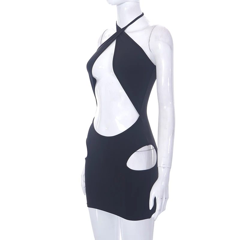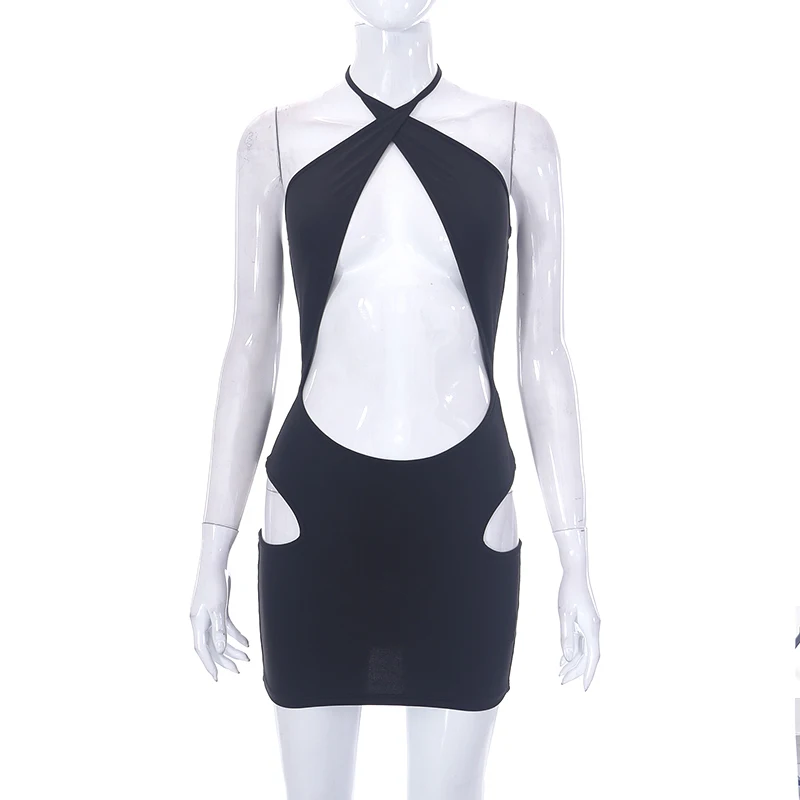 Cutenova J23DS065 Solid Sexy Fashion Hollow Out Bodycon Dress Sundresses Women Summer Sundress 2023