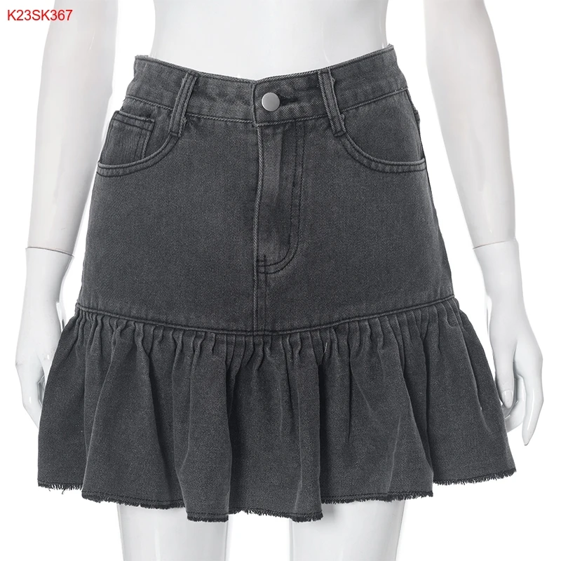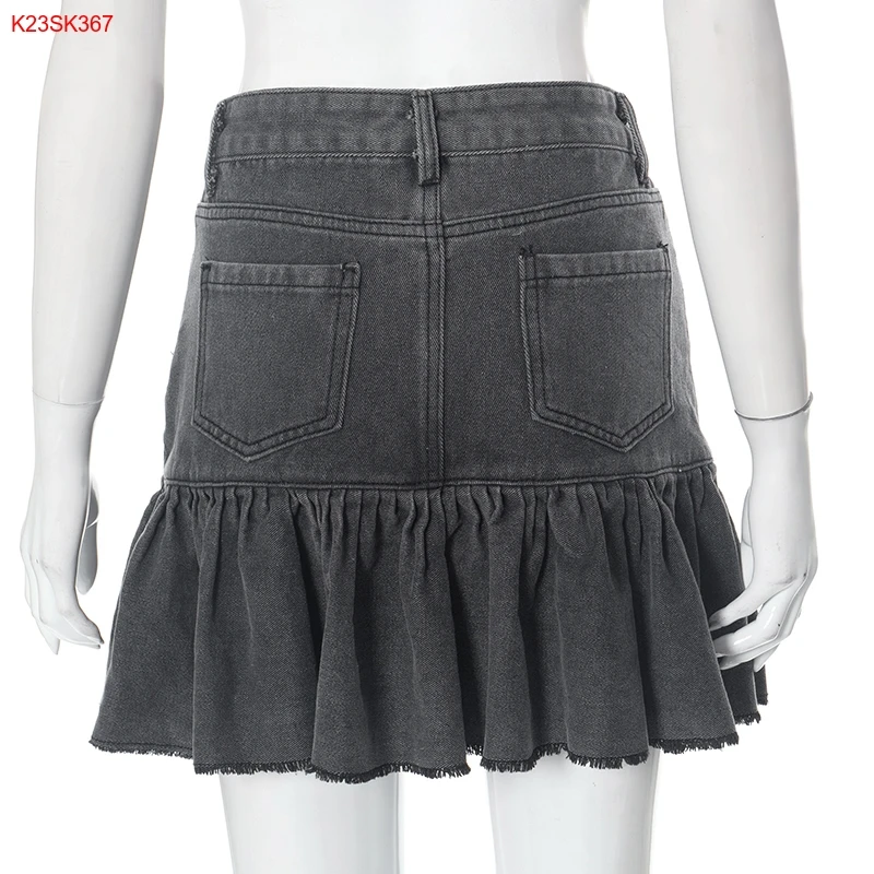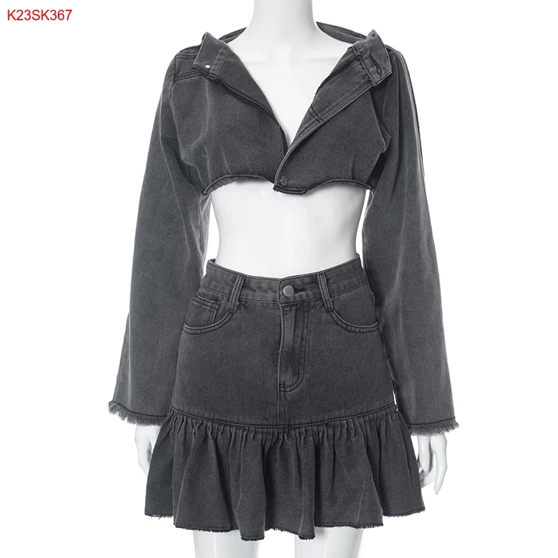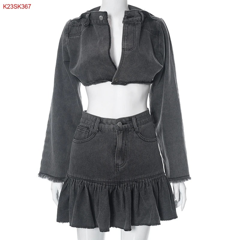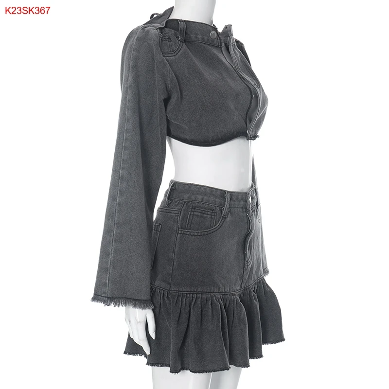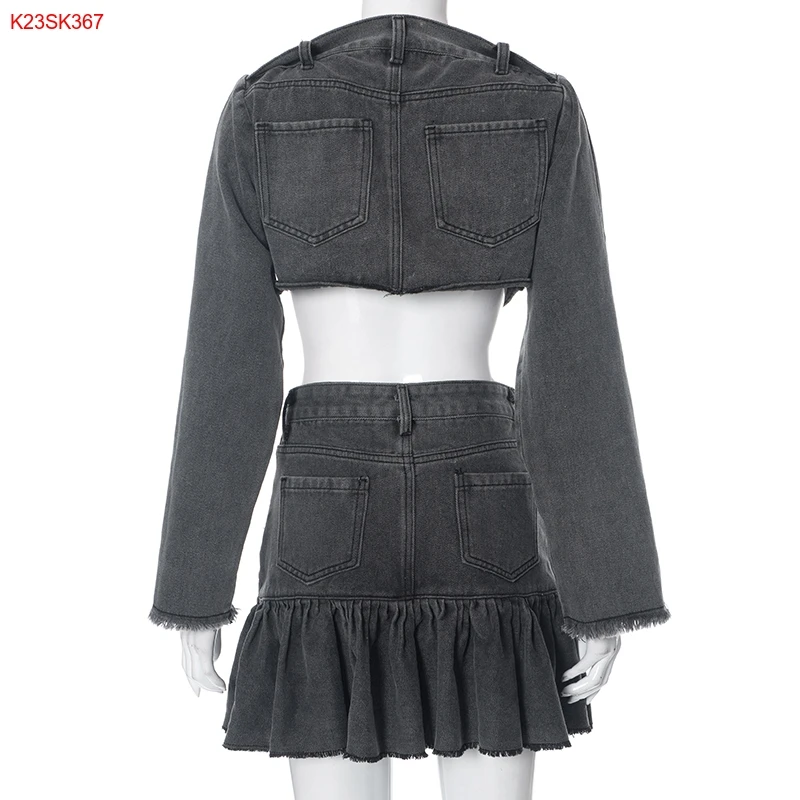 Cutenova K23SK367 2023 vintage Denim Mini Skirt and Top Spice Girls Y2K Jean Pleated Skirt Set For Women Sexy