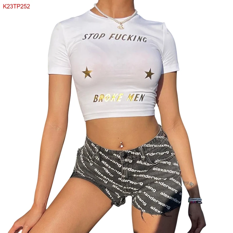 Cutenova K23TP252 2023 Ins Trendy Sexy Streetwear T-Shirt Crop Tops For Women Graphic T Shirts