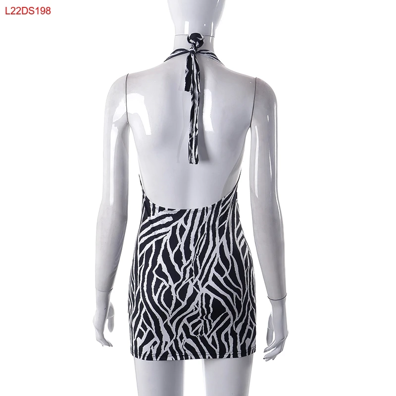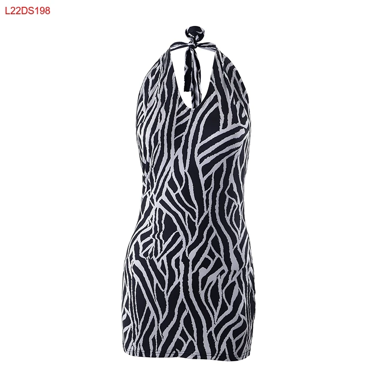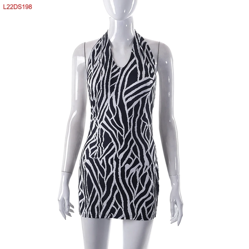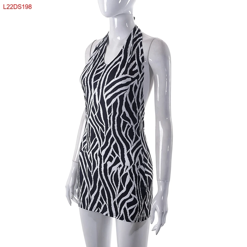 Cutenova L22DS198 2023 Summer New Halter Printed Mini Dress Casual Dress Women Dresses