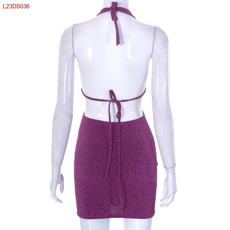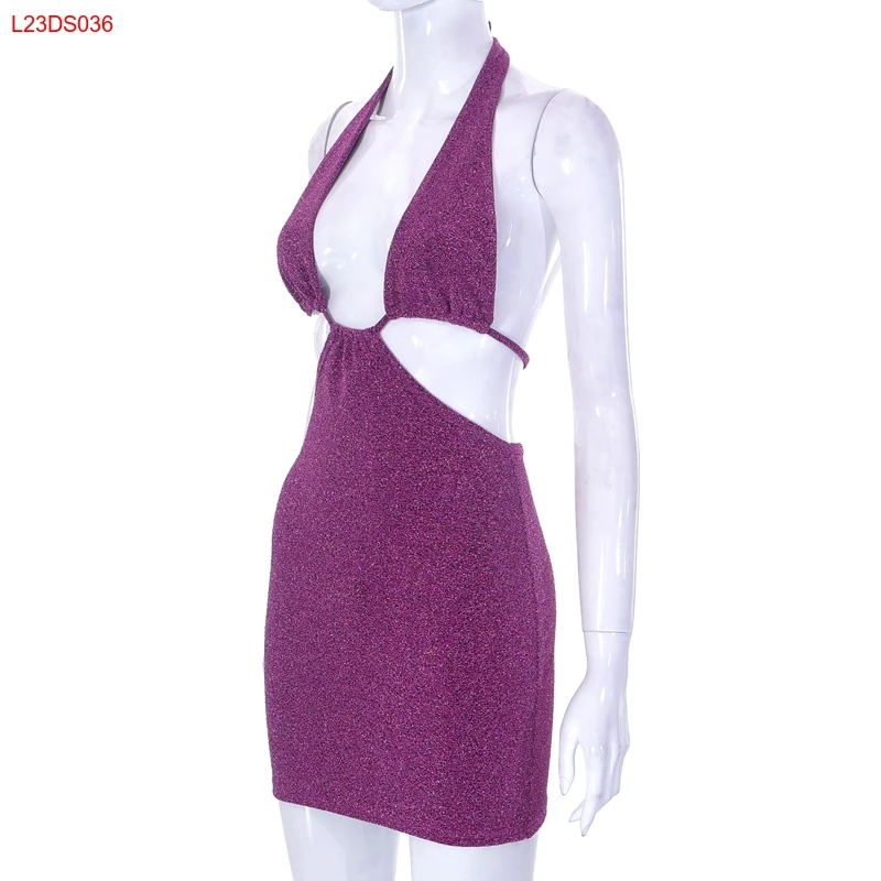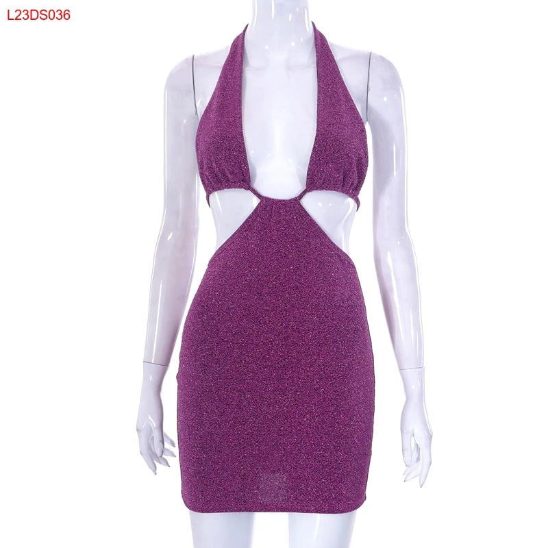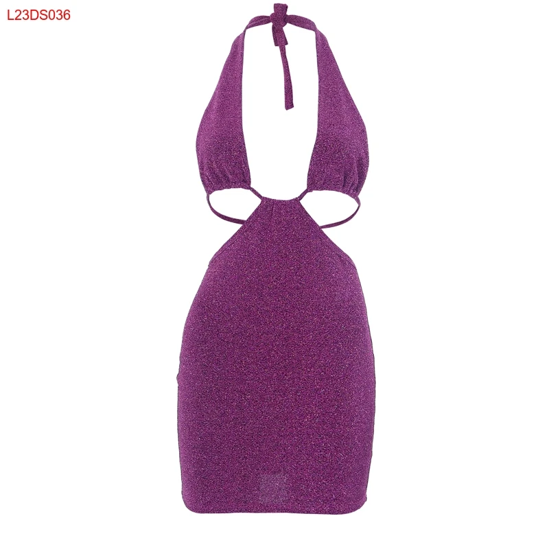 Cutenova L23DS036 2023 New Arrivals INS Back Cutout Shining Dresses Women Lady Elegant Ladies Sexy Dress