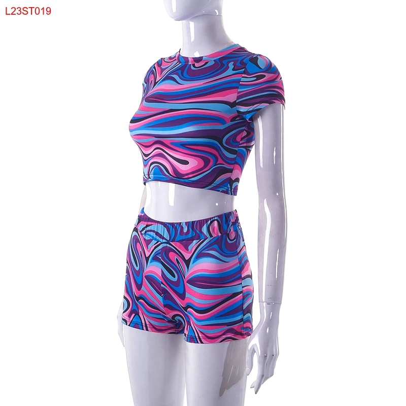 Cutenova L23ST019 Candy Color Y2K Print Streetwear Summer Sexy Printed Two Piece Pants Set Women Outfits For Women Two Piece Se