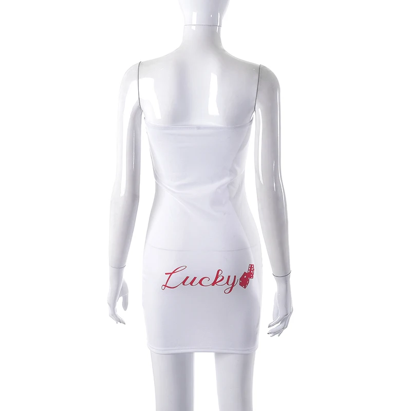 Cutenova M22DS629 Collarless Lucky Letter Printing Dice Pattern Sleeveless Summer Mini Dress Casual Dress Women Dresses