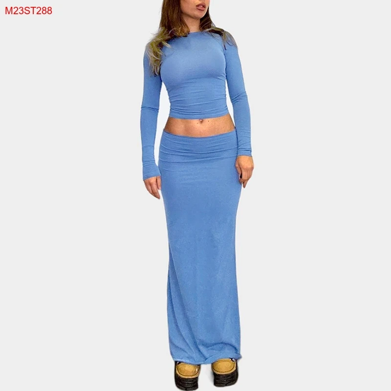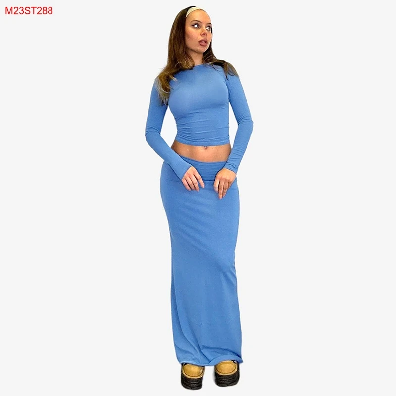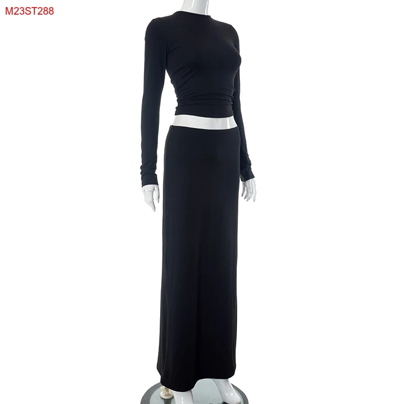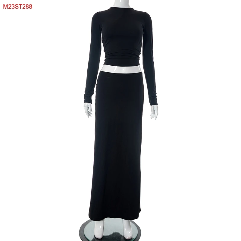 Cutenova M23ST288 2023 Ins Trendy Hot-Selling Elegant Long-Sleeved Skirt Suit 2 Piece Set Skirt And Top Set For Women