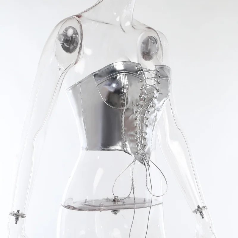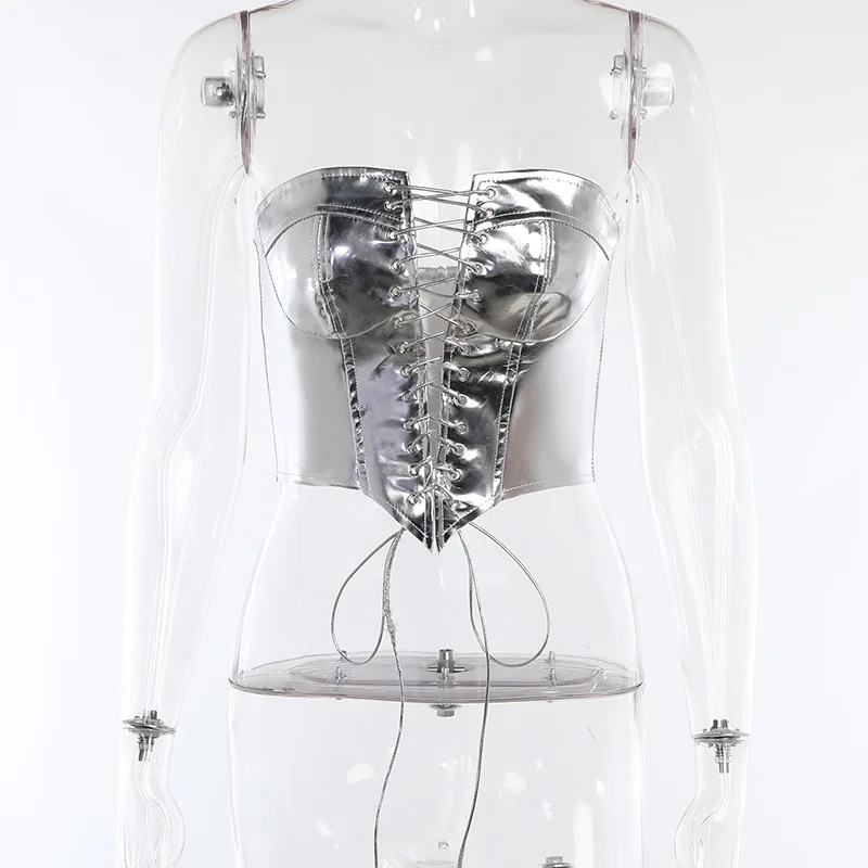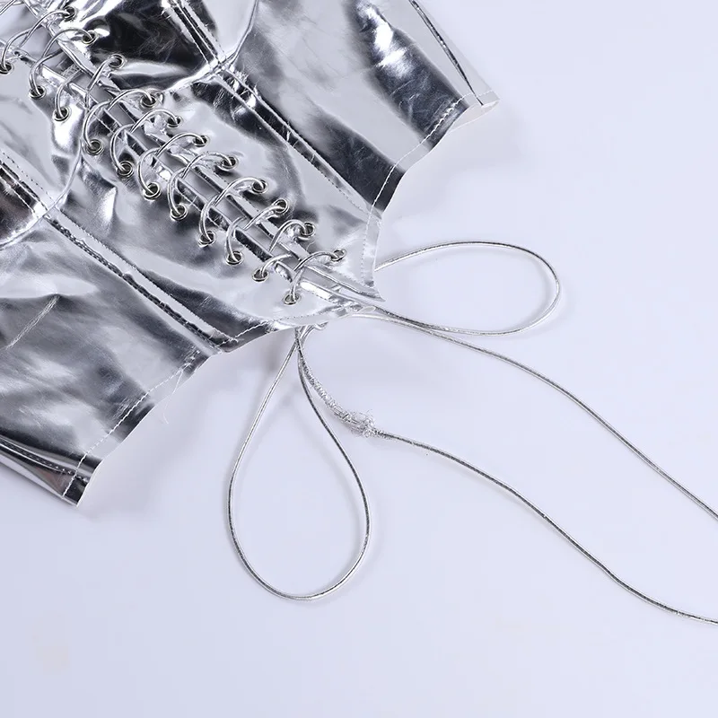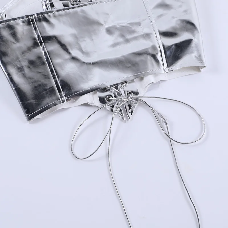 Cutenova M23TP444 Candy Color Y2K Hot Girl Tube Top Bright Leather Waist Slim Corset Top Tank Top Women