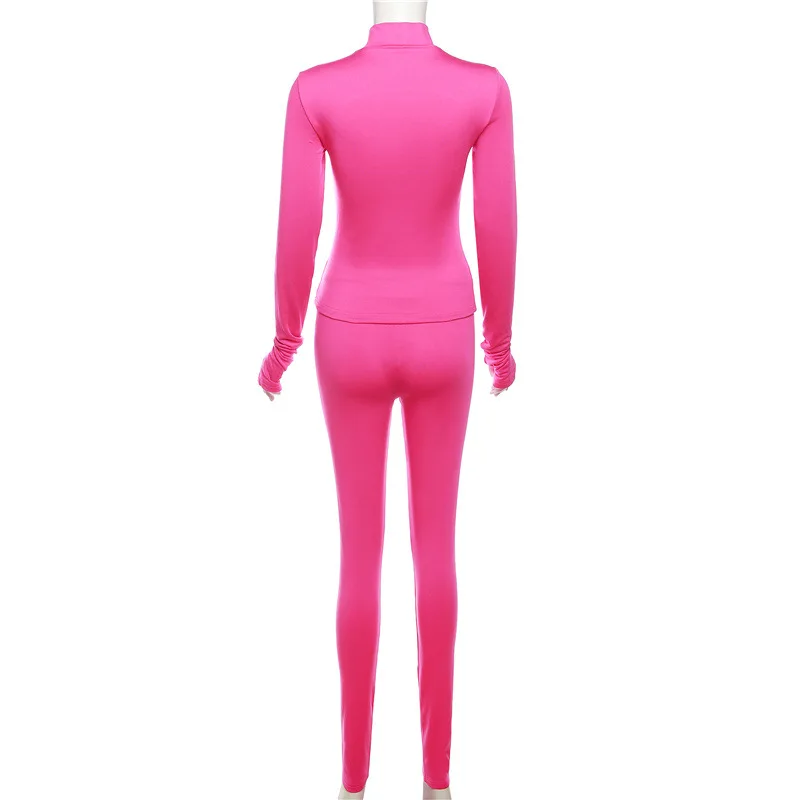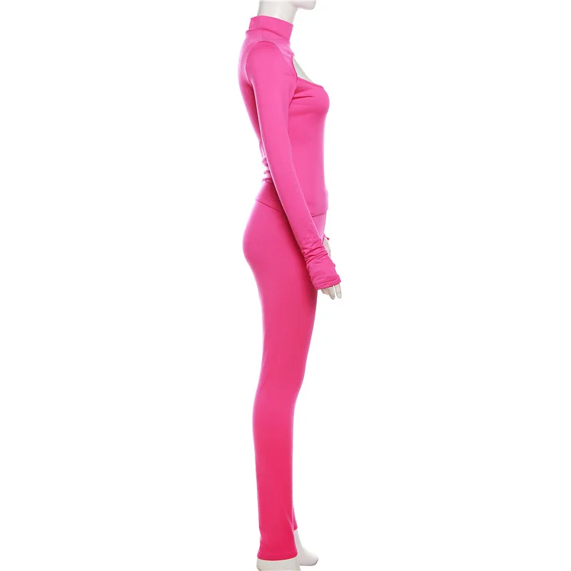 Cutenova MY23ST920 Sexy Hollow Out Turtleneck Long Sleeve Tight Casual Two Piece Outfits Pants Set Gym Fitness Sets