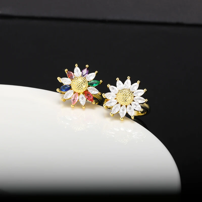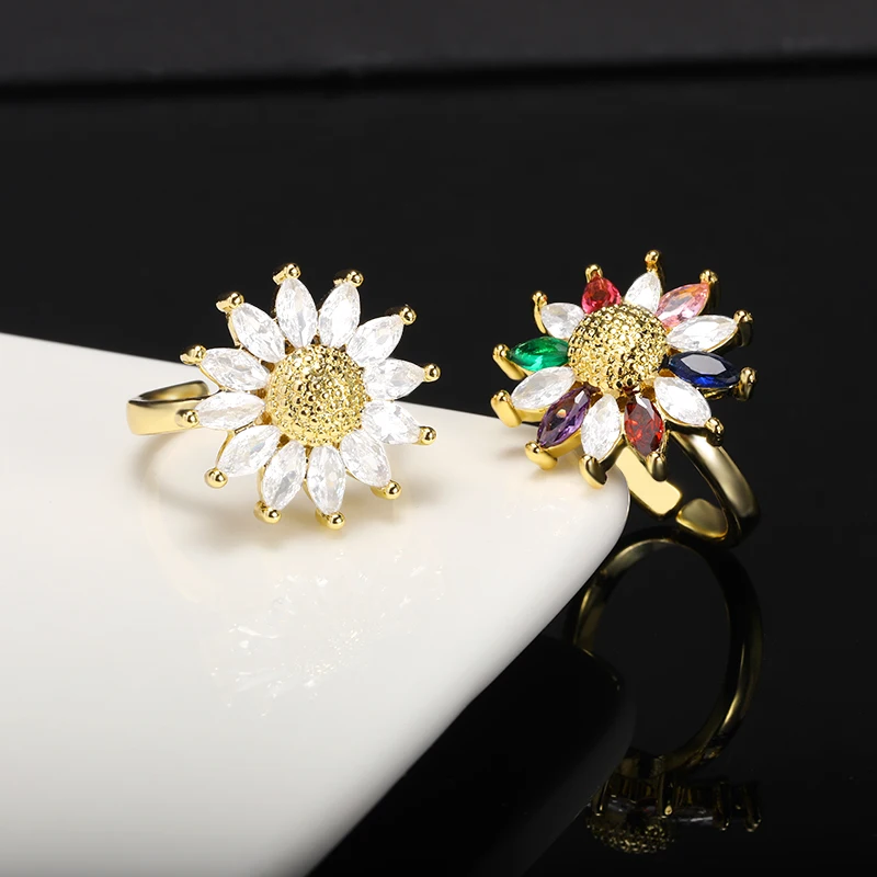 CZ Sunflower Ring for Women Girls Eternity Band Rings
