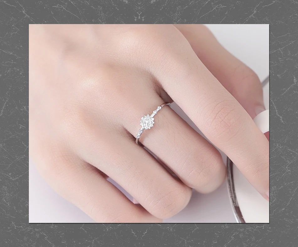 CZCITY Lady 925 Sterling Silver Jewelry Woman Trendy Snowflake Metal Korean Promise Finger S925 Minimalist Ring