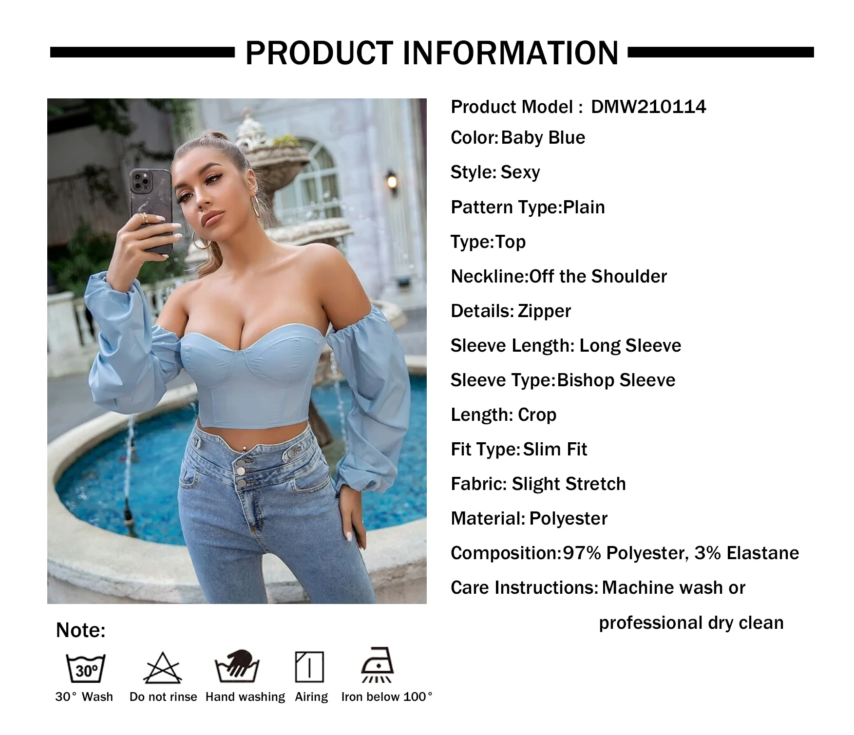 D&M Drop Shipping 2022 Summer Fashionable Womens Crop Tops Lantern Long-Sleeved Off Shoulder Slim Thin Waist Ultrashort Blouses