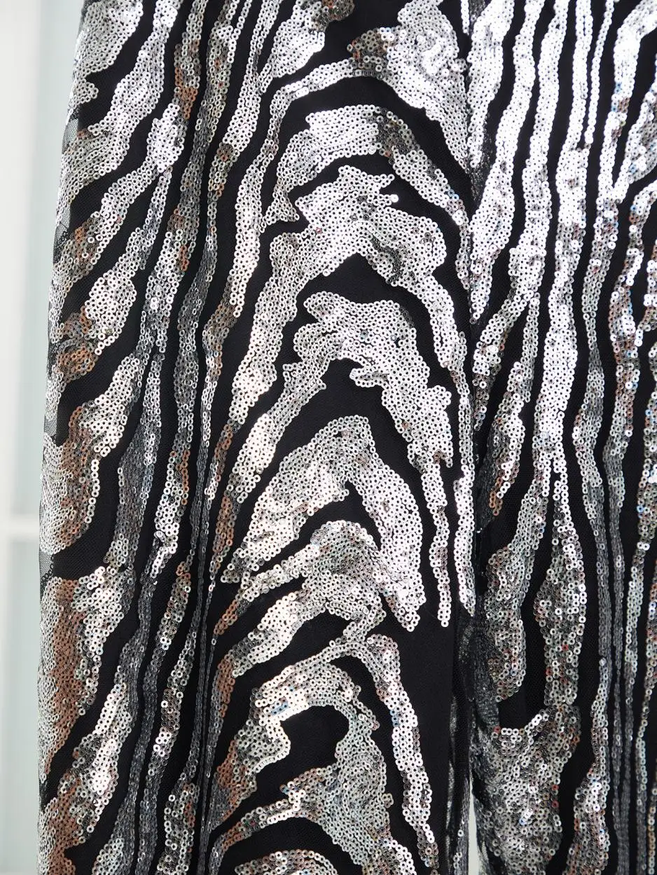 D&M Summer Women Racerback Tank Tops Silver Zebra Stripe Spaghetti Strap Contrast Sequin Bustier Crop Cami Crop Tops