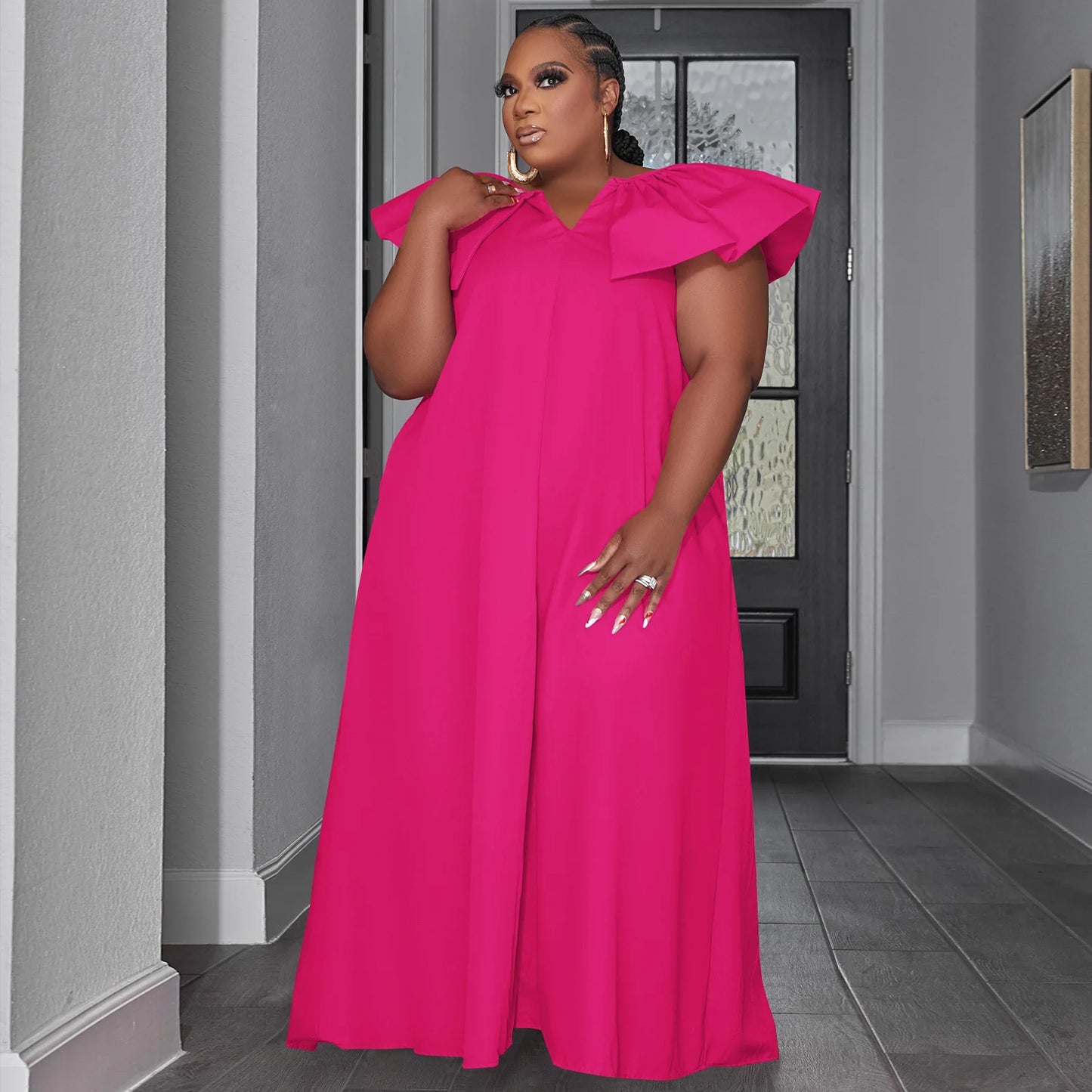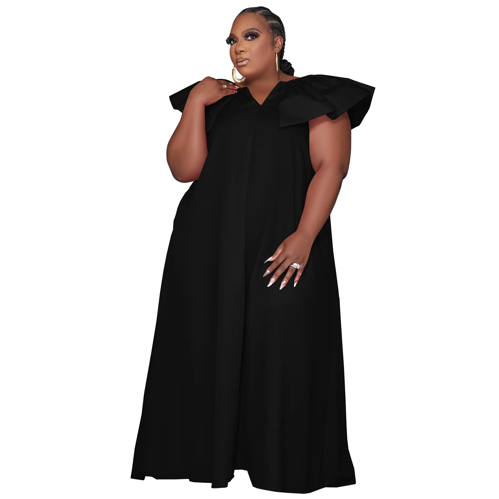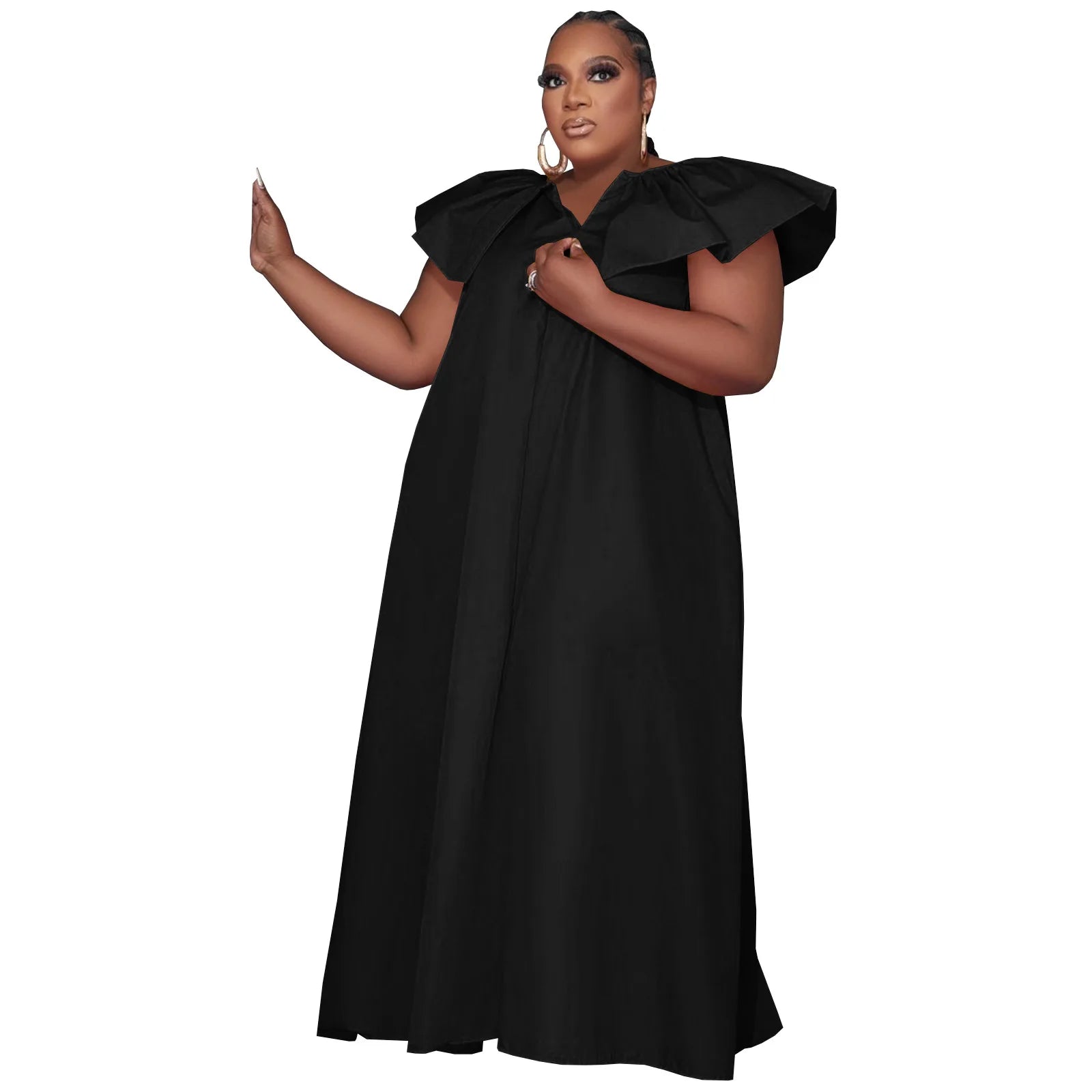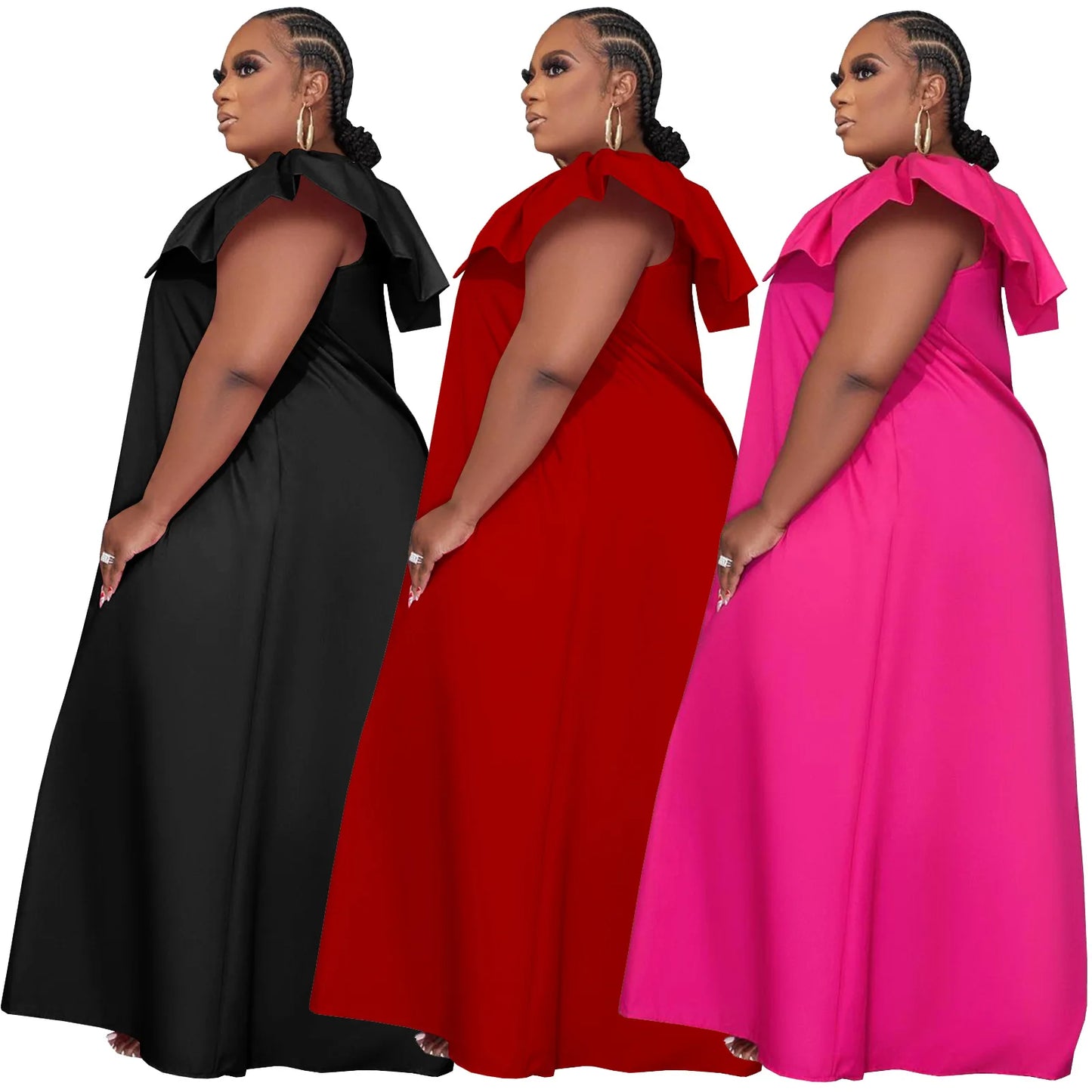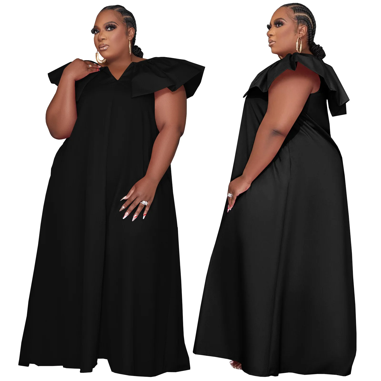 D0314ME32 Spot Goods Plus Size Solid Color Lotus Sleeve Loose Casual Women Dress Sehe Fashion