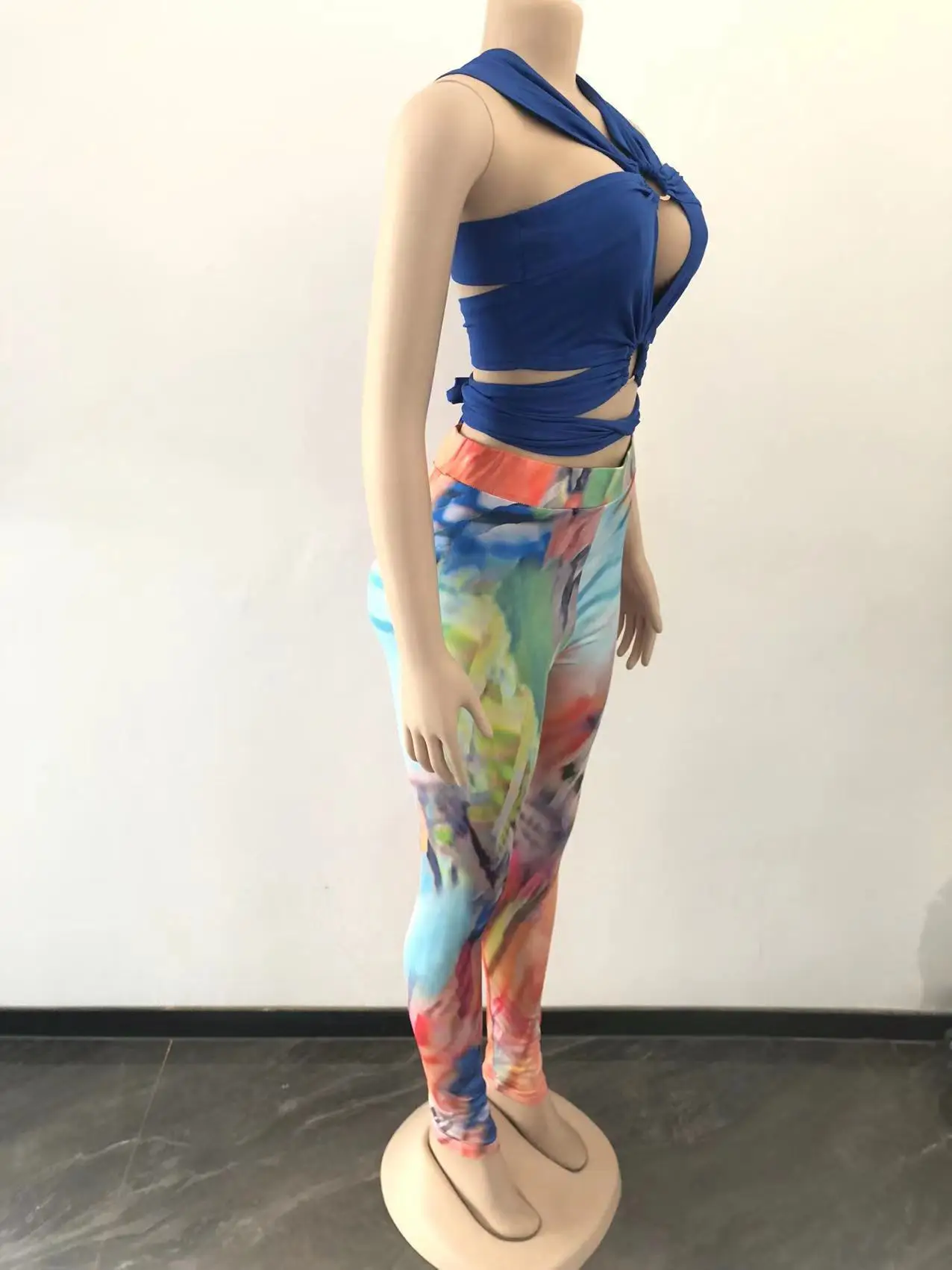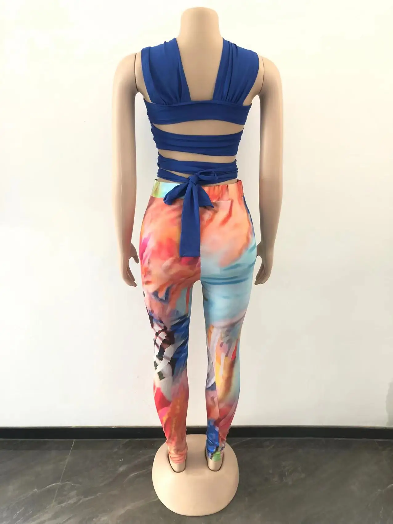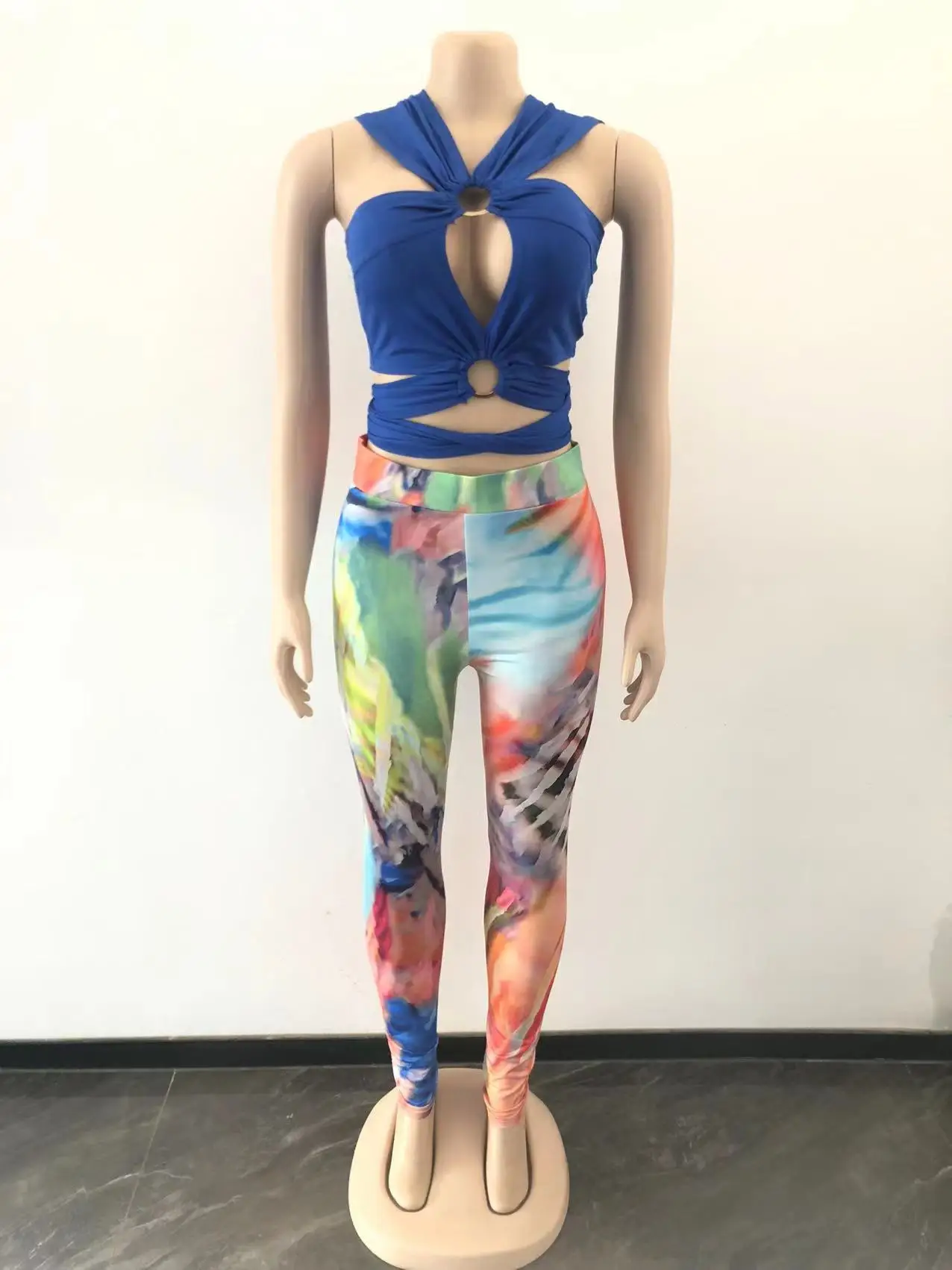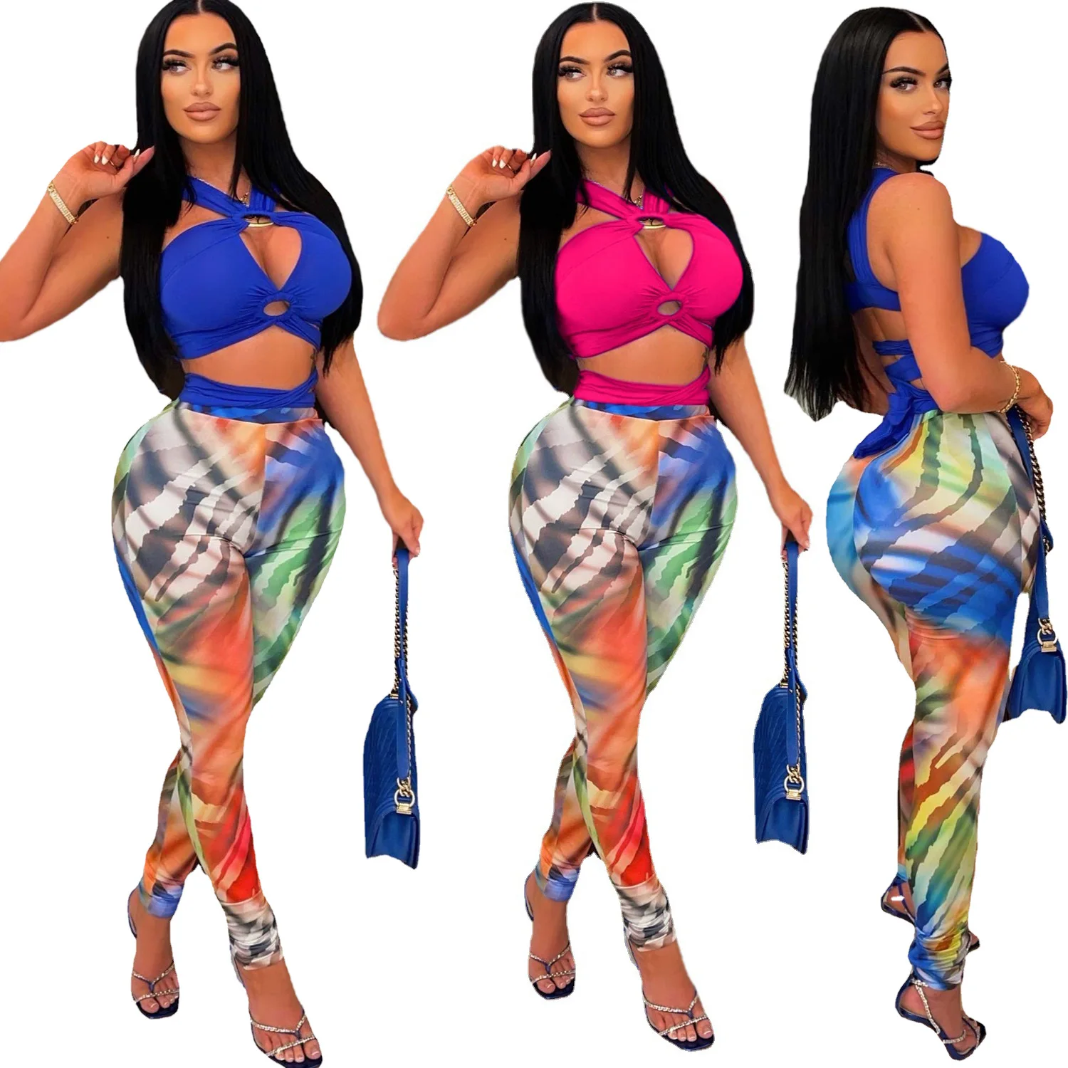 D0314TA79 High Quality Going Out Solid Color Sleeveless Frenulum Ctop Top And Graphic Long Pants Set Women SEHE FASHION