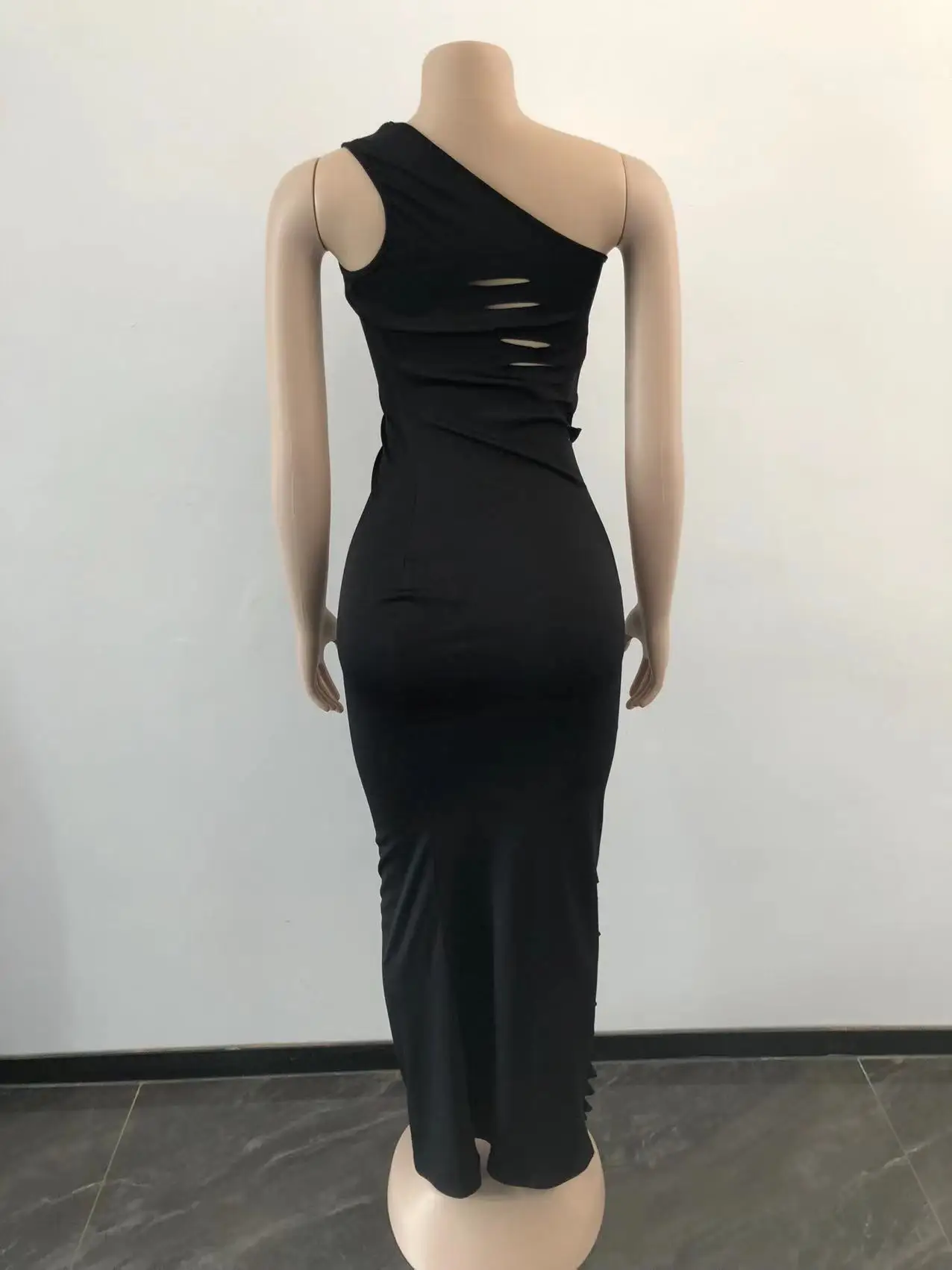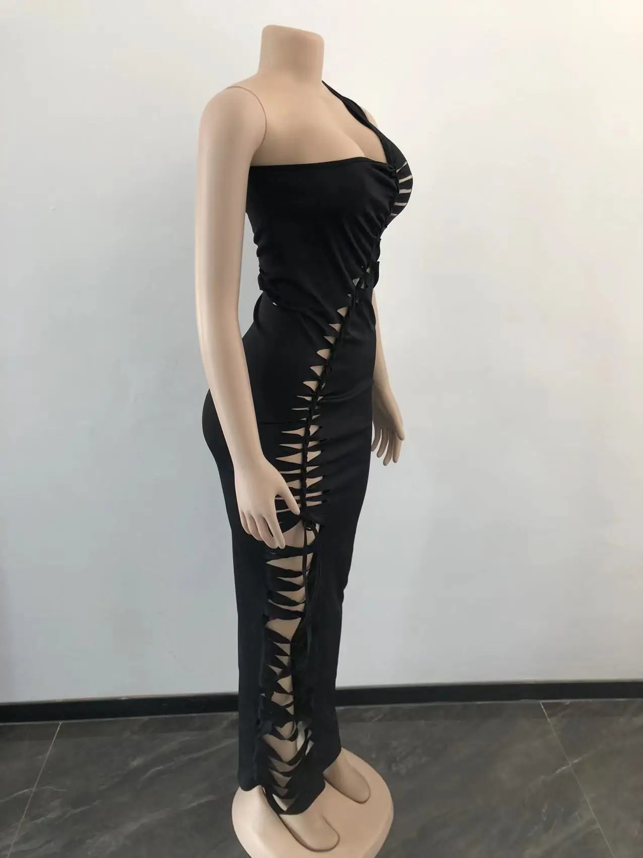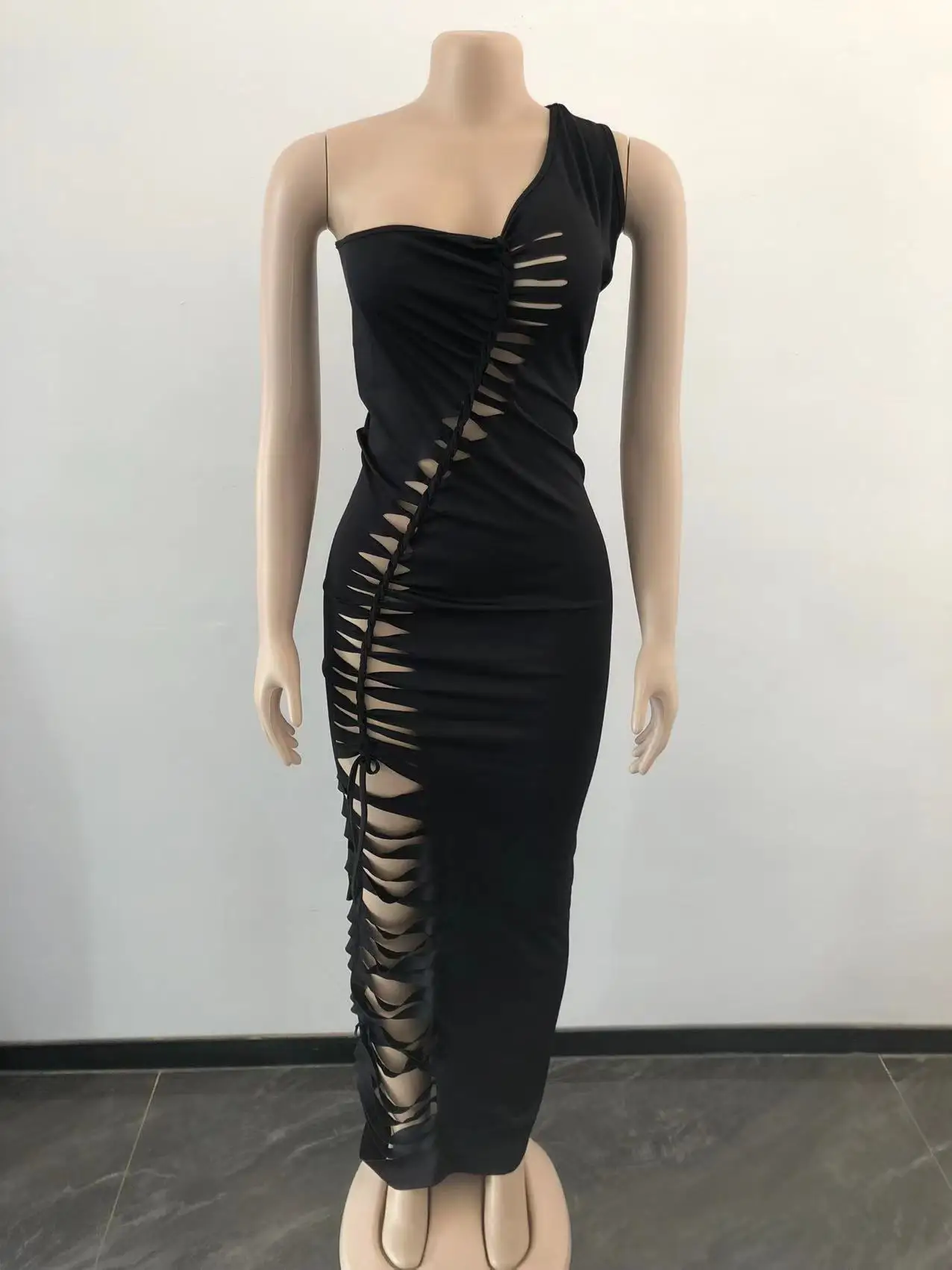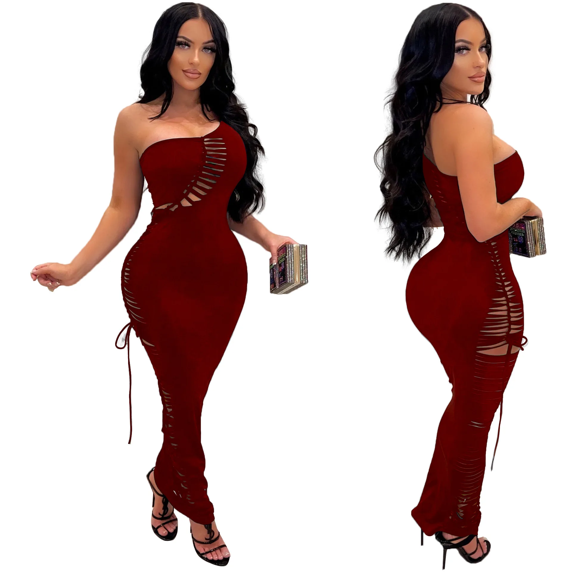 D0314TA83 Wholesale Direct Sales Party Solid Color Bodycon Hollow Out Binding One Shoulder Women Sehe Fashion