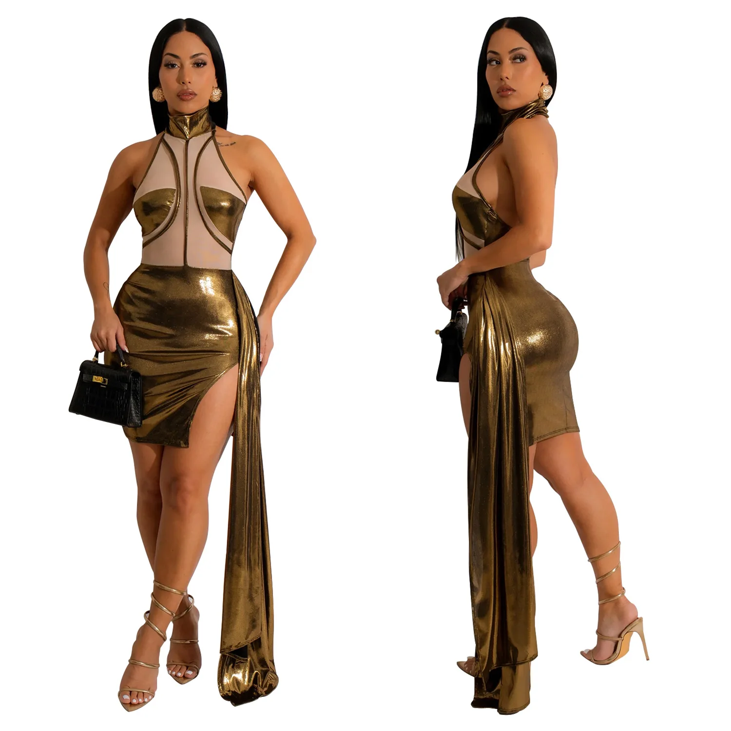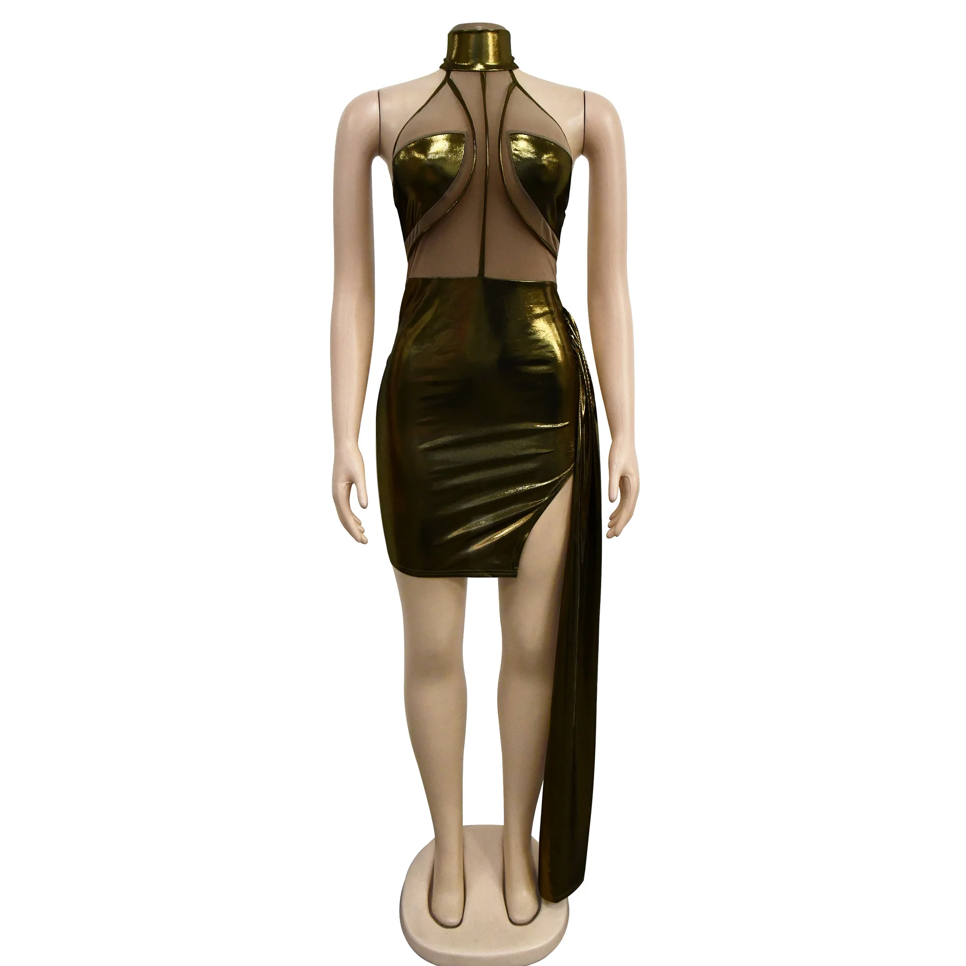 D0411TA21 Wholesale High Quality Sexy Halter Backless Sequin Bodycon Club Dress For Women Sehe Fashion
