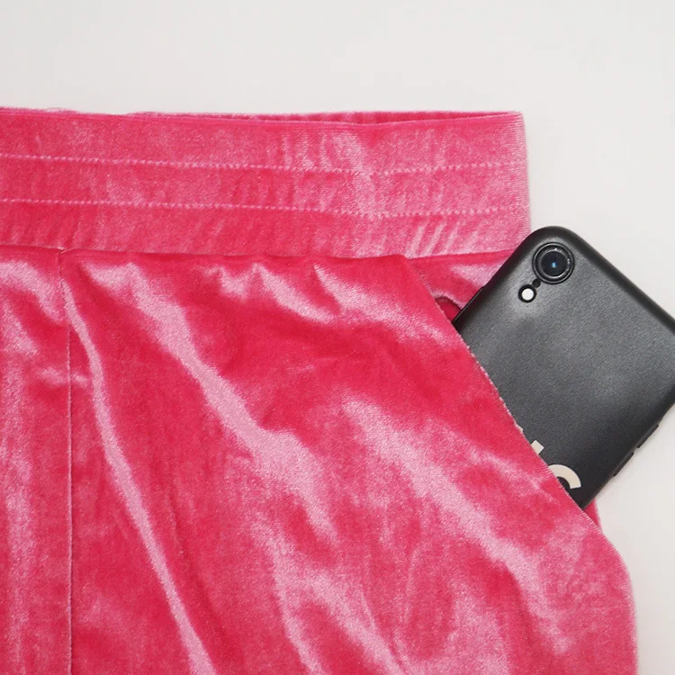 D0906TA13 Own Brand Velvet Bodycon Long Sleeve Hoodie 2 Piece Shorts Sets Night Wear For Women Sehe Fashion