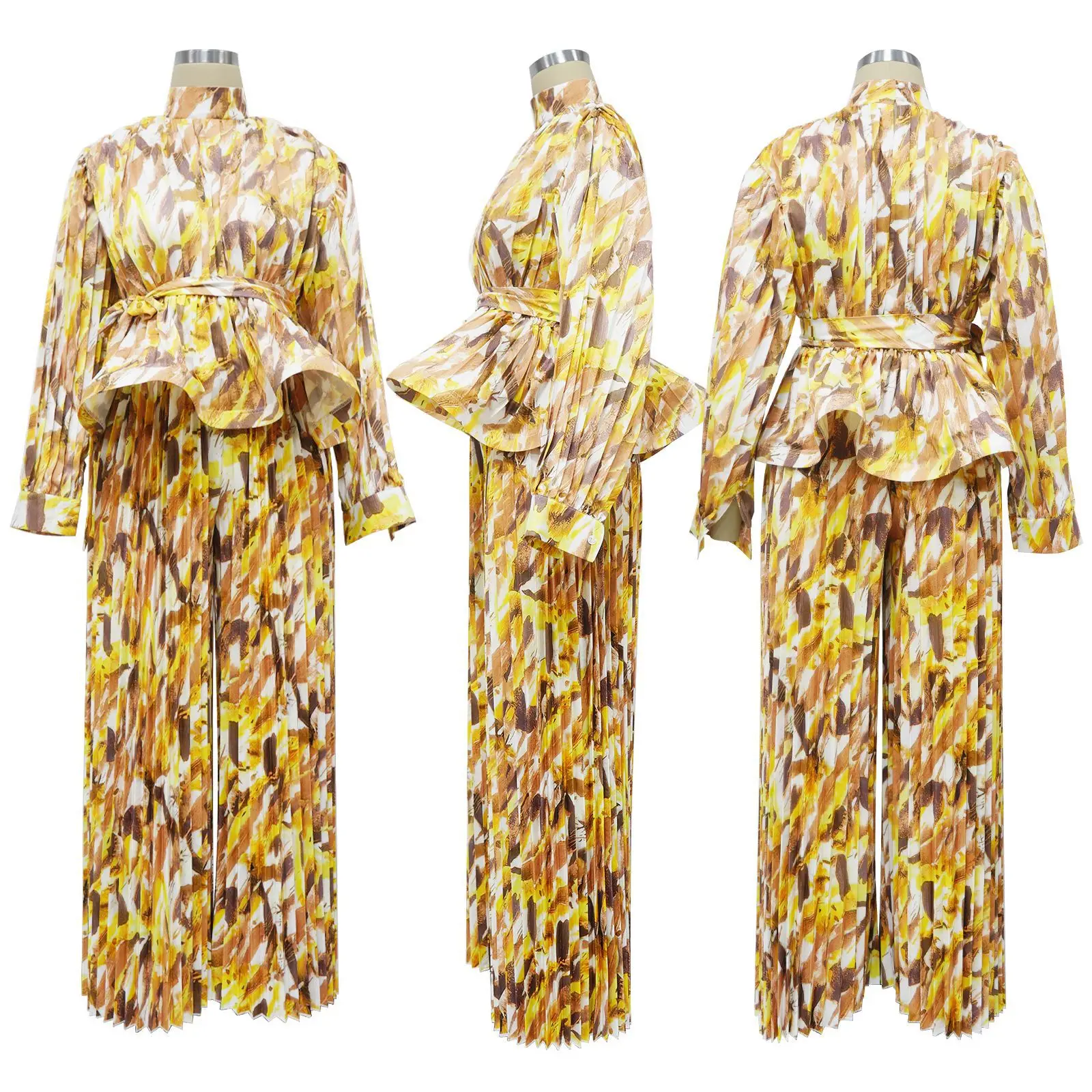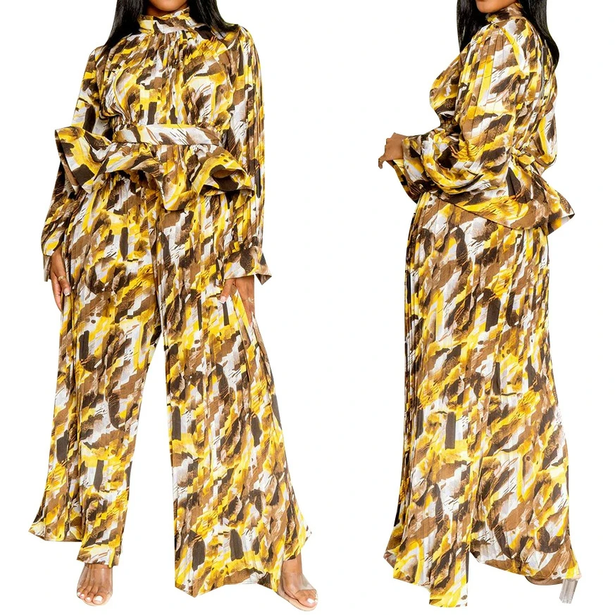 D0906TA17 Spot Goods African Print Long Sleeve 3D Ruffle Bottom Top And Pants Clothing Sets Women Sehe Fashion